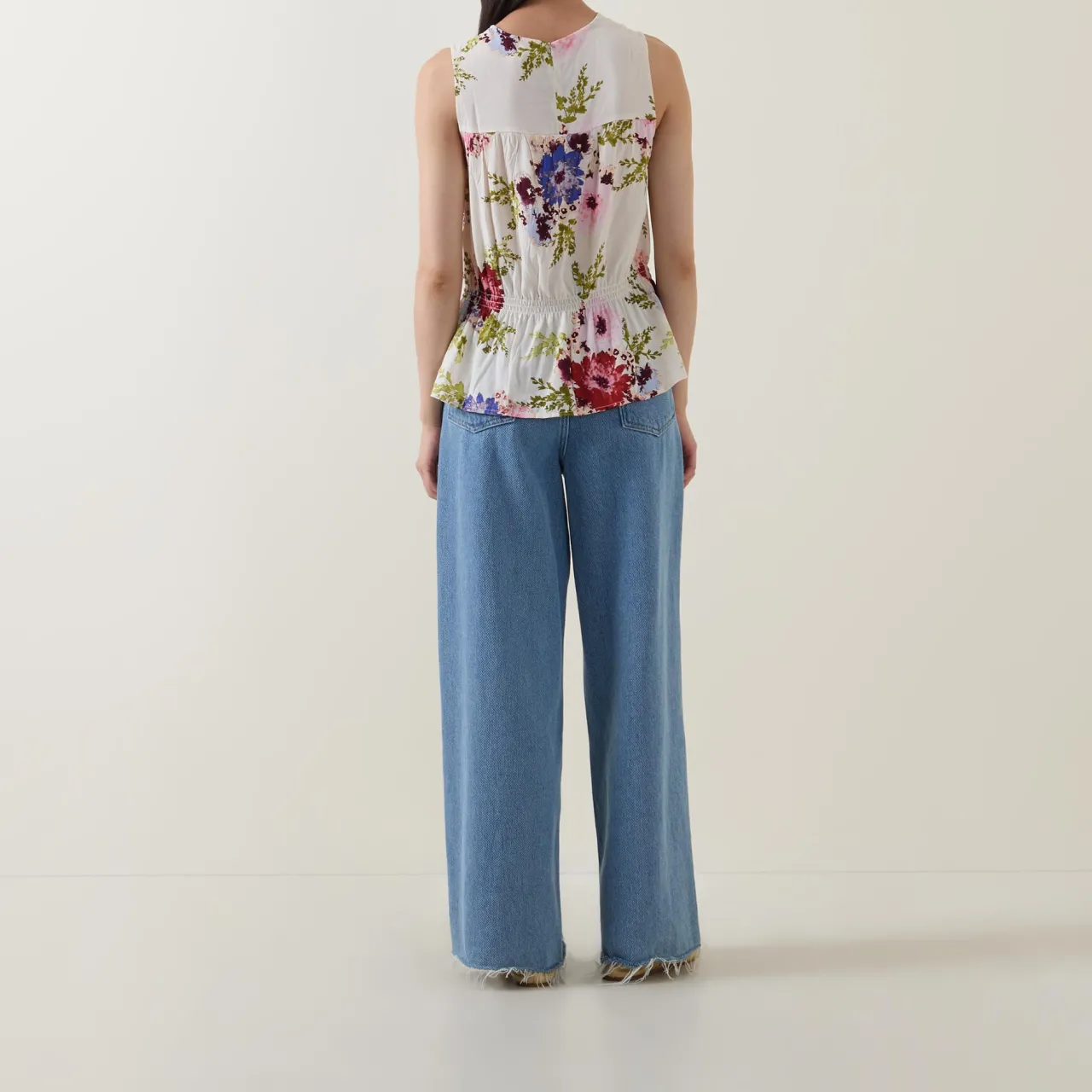 - Round neckline, sleeveless, peplum waist with shirred panel, soft & lightweight fabric, floral pattern