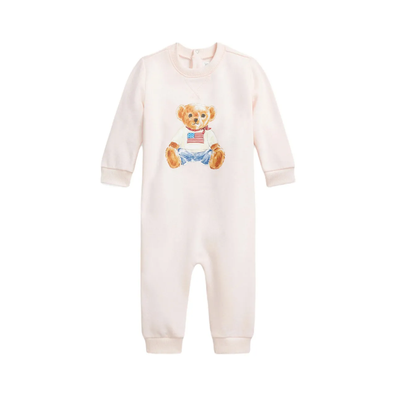 - Crew neckline, three-snap placket, long sleeves, ribbed cuffs, Polo Bear print, concealed ring snaps at the hem