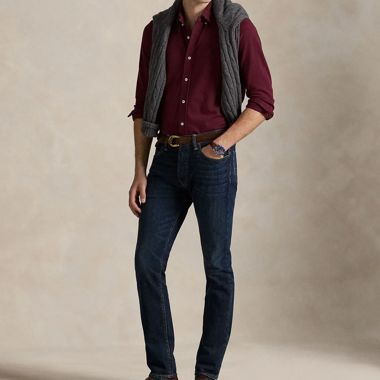 - Button-down collar, buttoned placket, long sleeves with buttoned barrel cuffs, split back yoke with a box pleat ensures a comfortable fit and a greater range of motion, signature embroidered pony at the left chest