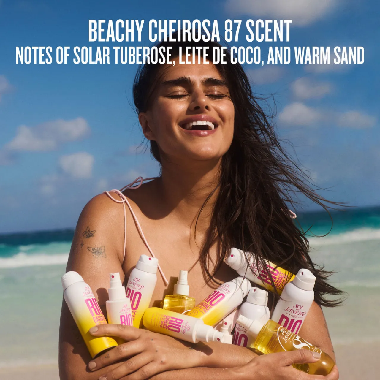 Description: A natural sheen. This SPF 50 body spray refreshes and hydrates skin. Bask in the beachy and nostalgic scent of sunshine on skin.