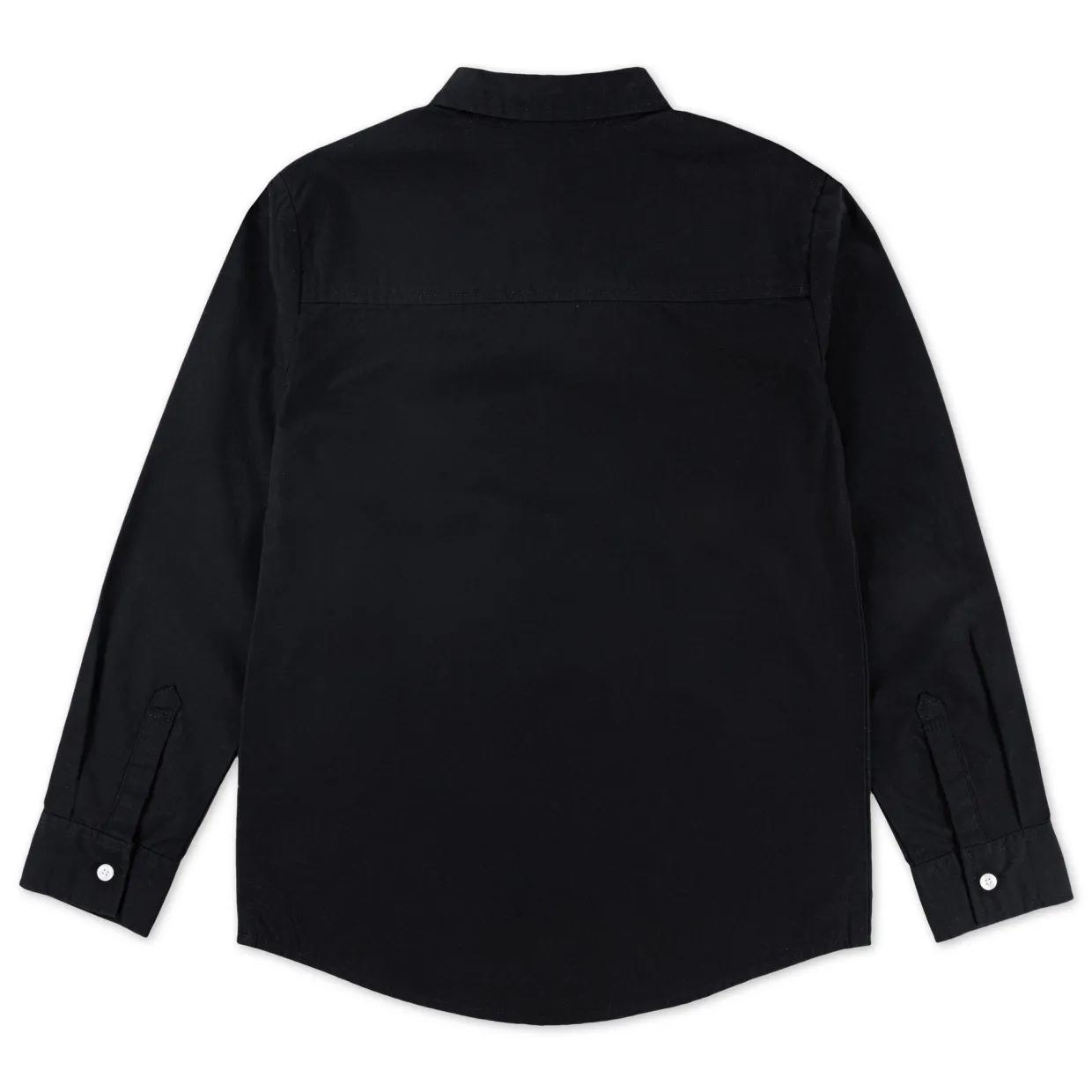 - Pointed shirt collar, flat back yoke, button-up front, buttoned cuffs for adjustable fit and added detail