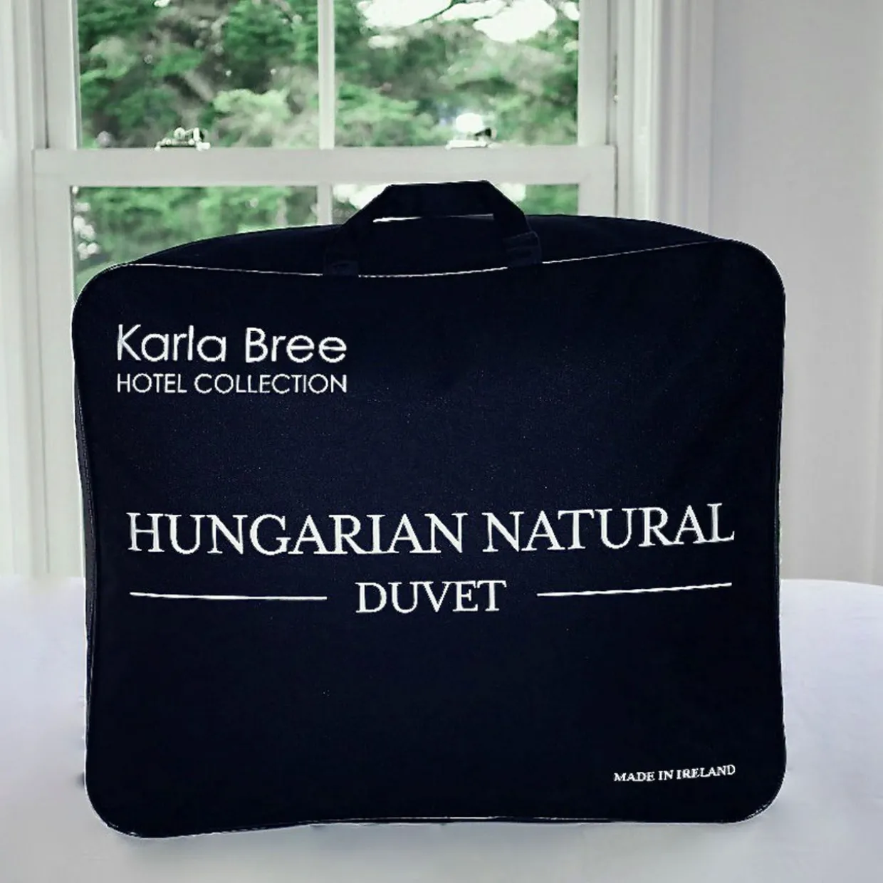 - 80% new white large cluster Hungarian goose down, 20% fine white Hungarian goose feather. Pure Cotton 280 thread count casing with extra soft finish which is lighter for added comfort. Machine Washable 40 degrees