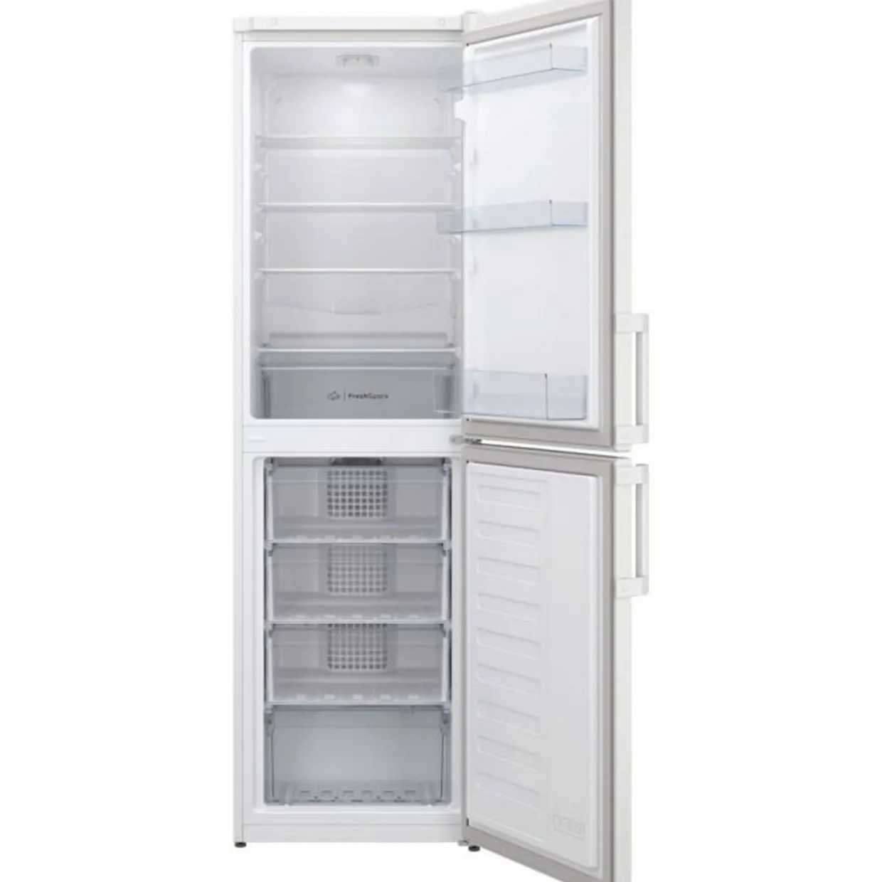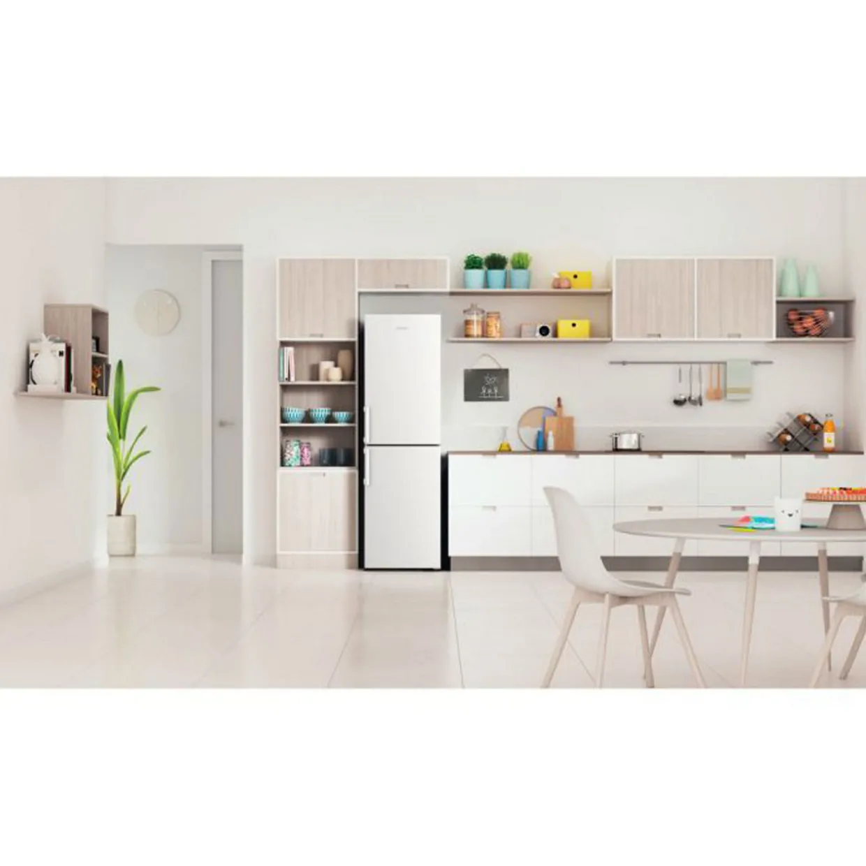 This Indesit freestanding Fridge Freezer features: a tall appliance to fit your family needs. White colour. Glass shelves with profile fronts, providing robustness and extra safety. Convenient bottle balcony to safely store your bottles.