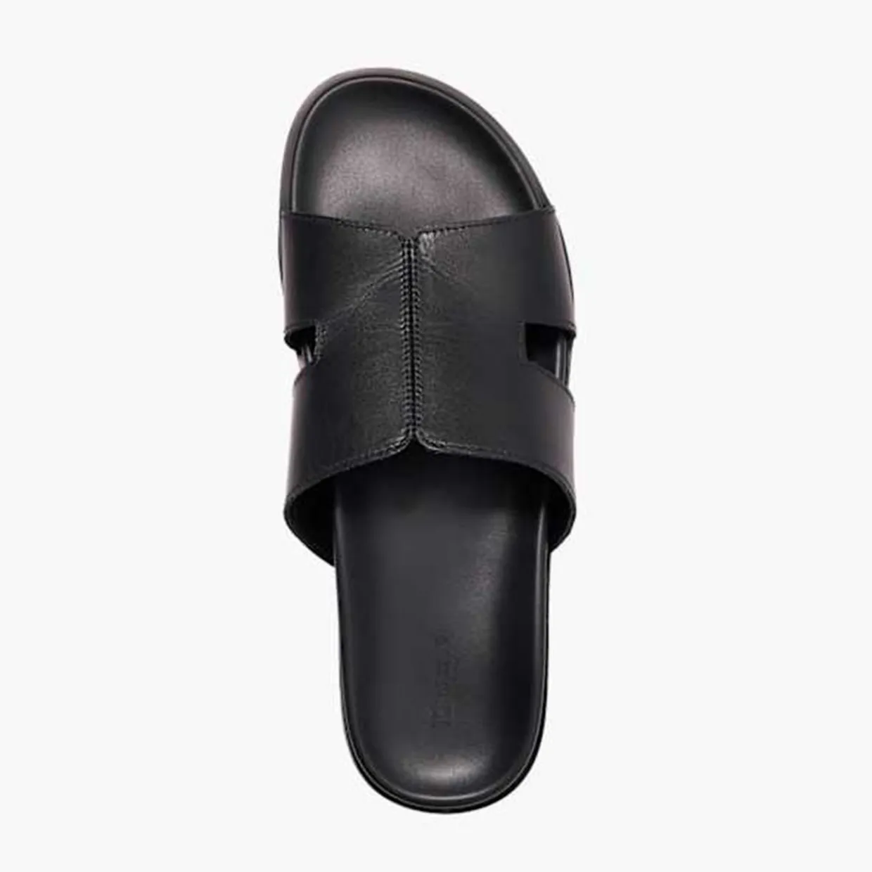 - Round open toe, slip on design, cut-out detail, textured sole, smooth finish