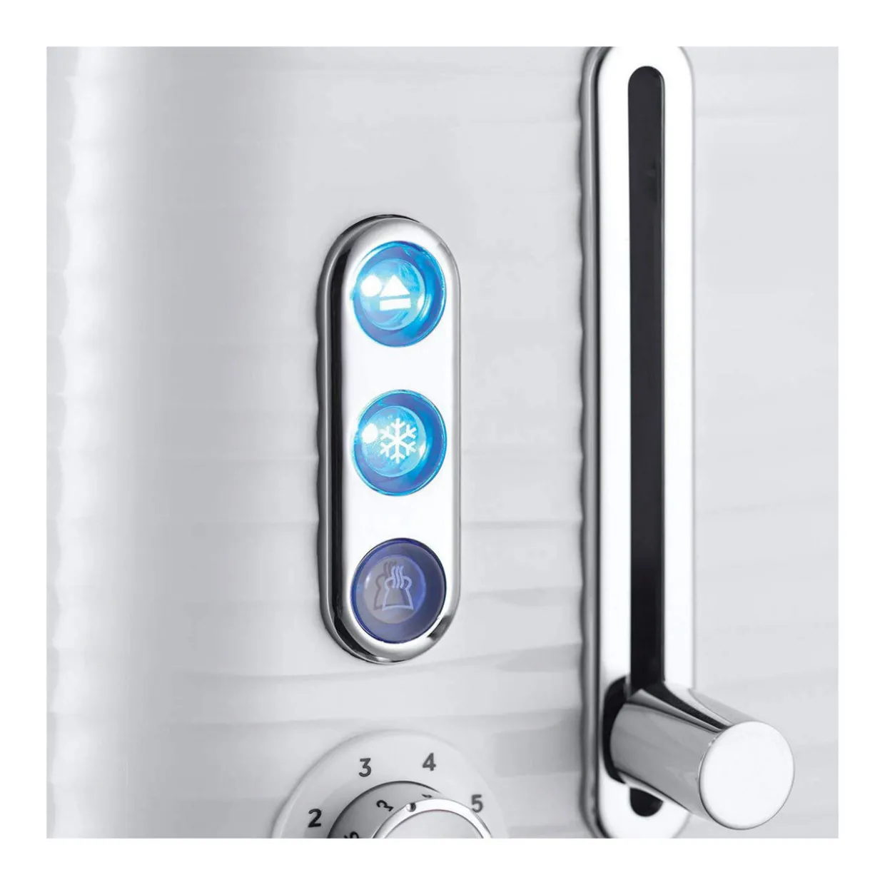 With multiple settings, this stylish toaster allows everyone in the family to achieve their perfect toast preference, allowing you to toast bread from frozen and reheat toast which may have gone cold – all helping you save time and reduce waste.