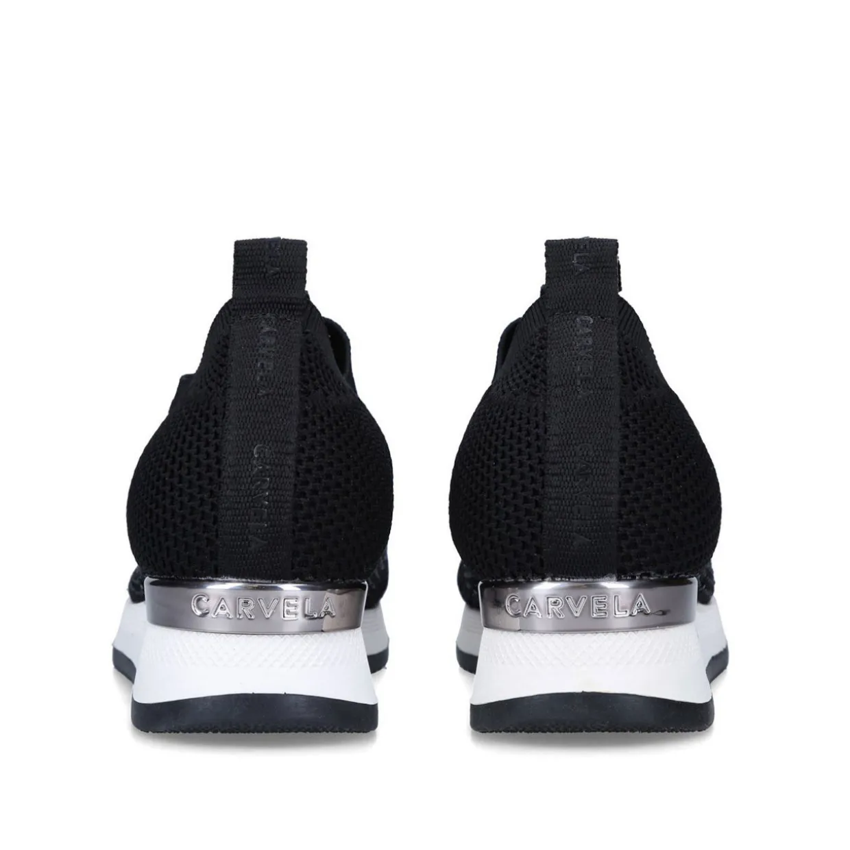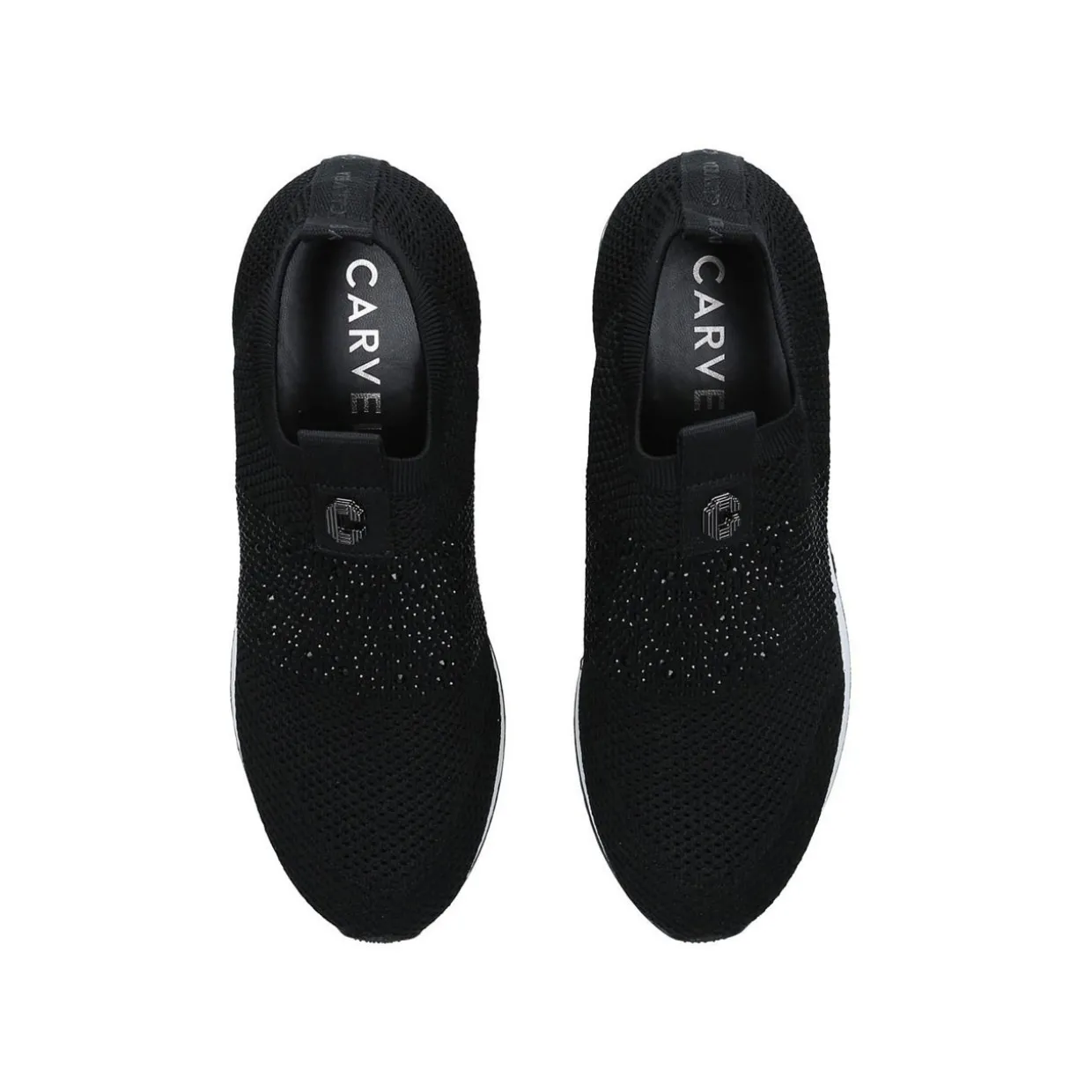 - Slip-on, pull tab at heel, knit upper, embellished details, platform sole, logo hardware details