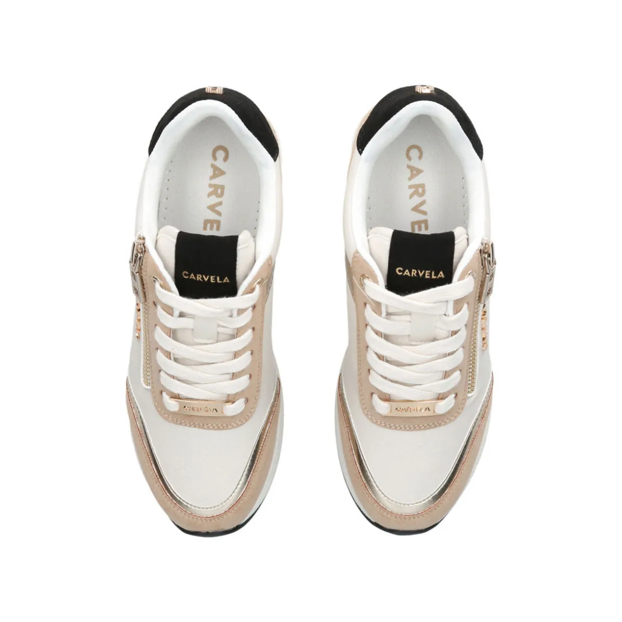 - Lace-up fastening, side zip detail, contrast panelling, gold-tone hardware, branding details, almond toe, low-top, Icon C stud
