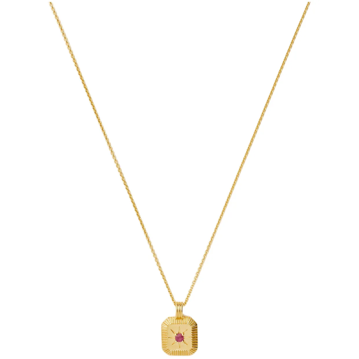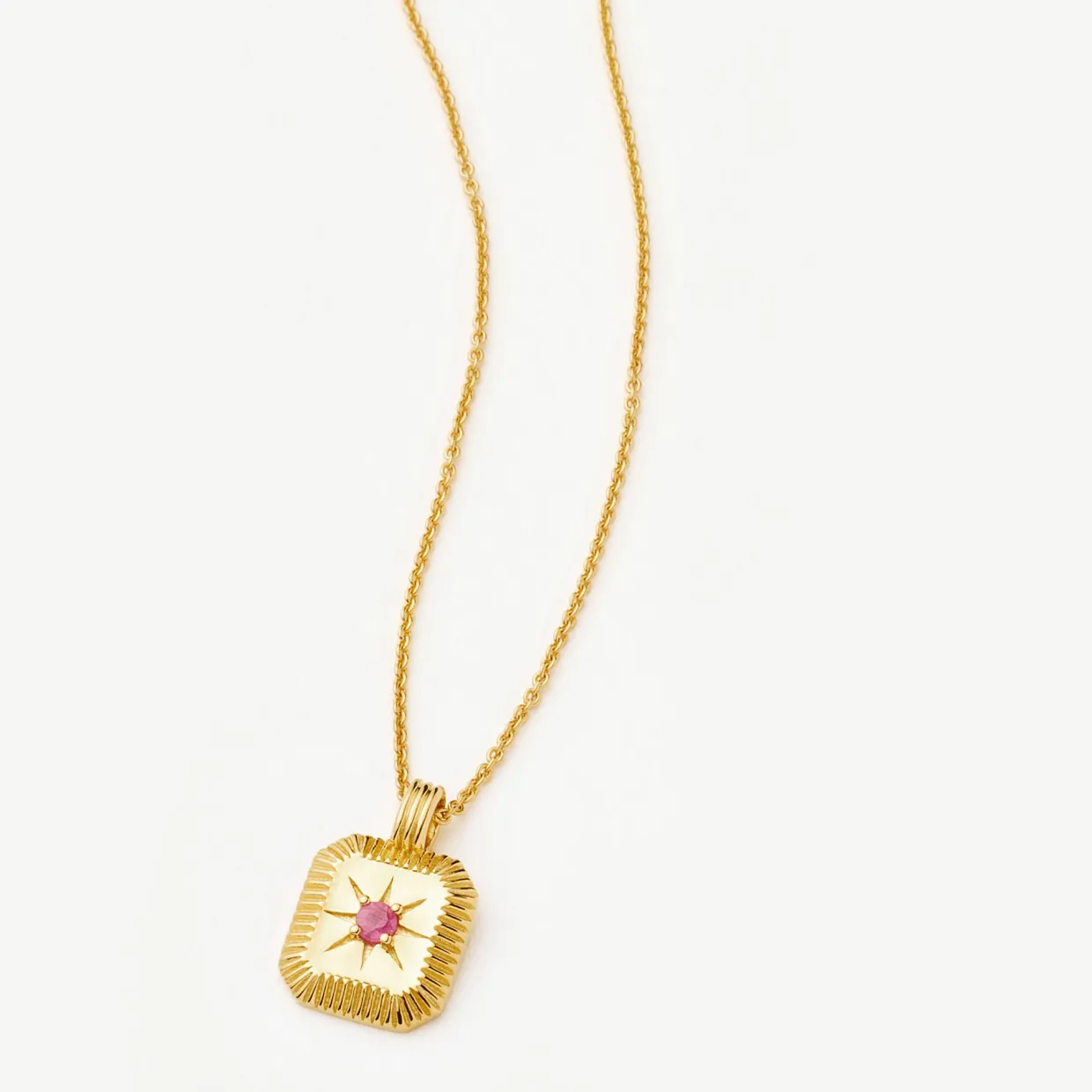 - Cable chain necklace, ridged pendant, natural ruby gemstone, central star motif