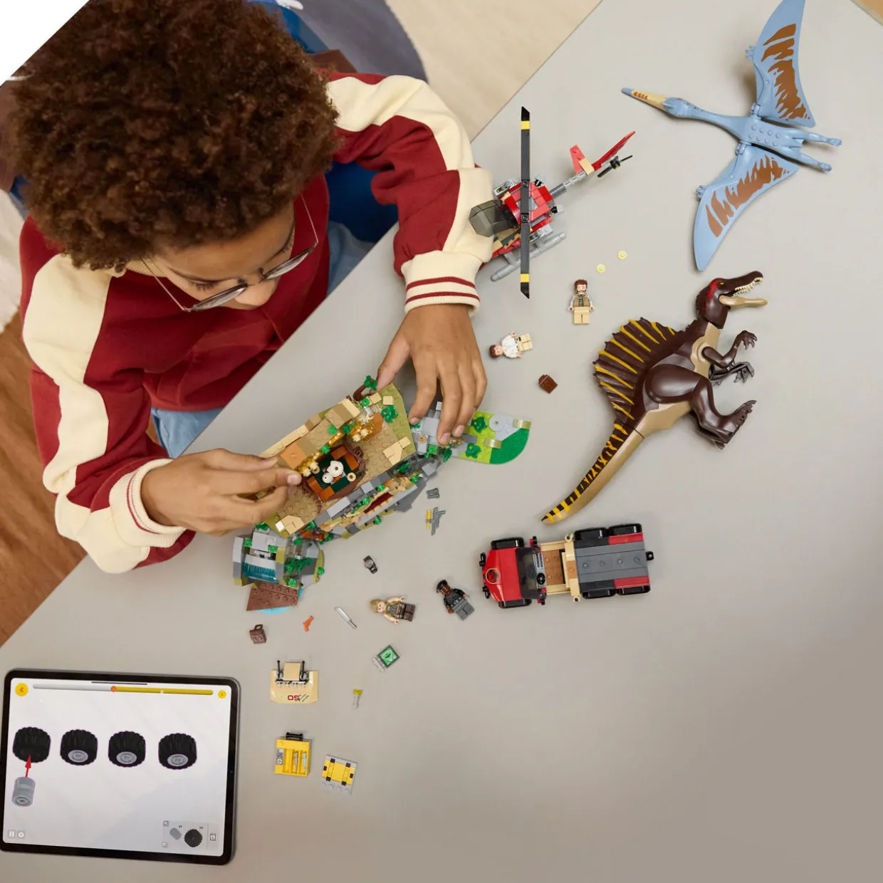 - 984 pieces, Jurassic World theme, two dinosaur figures, temple, two toy vehicles, four minifigures