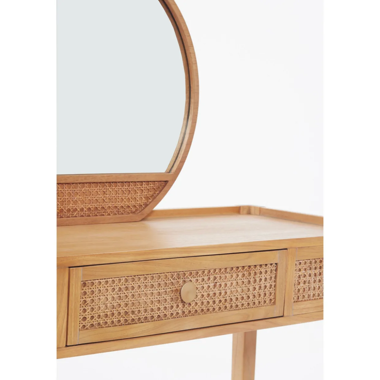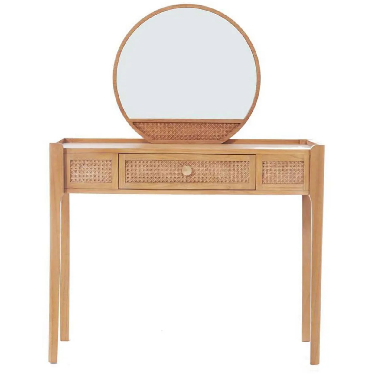 - Dimensions: Dressing Table: H 83 x W 104 x D 40 cm. Mirror: H 74 x W 60 x D 7.5 cm. Stool: H 46 x W 50 x D 38 cm