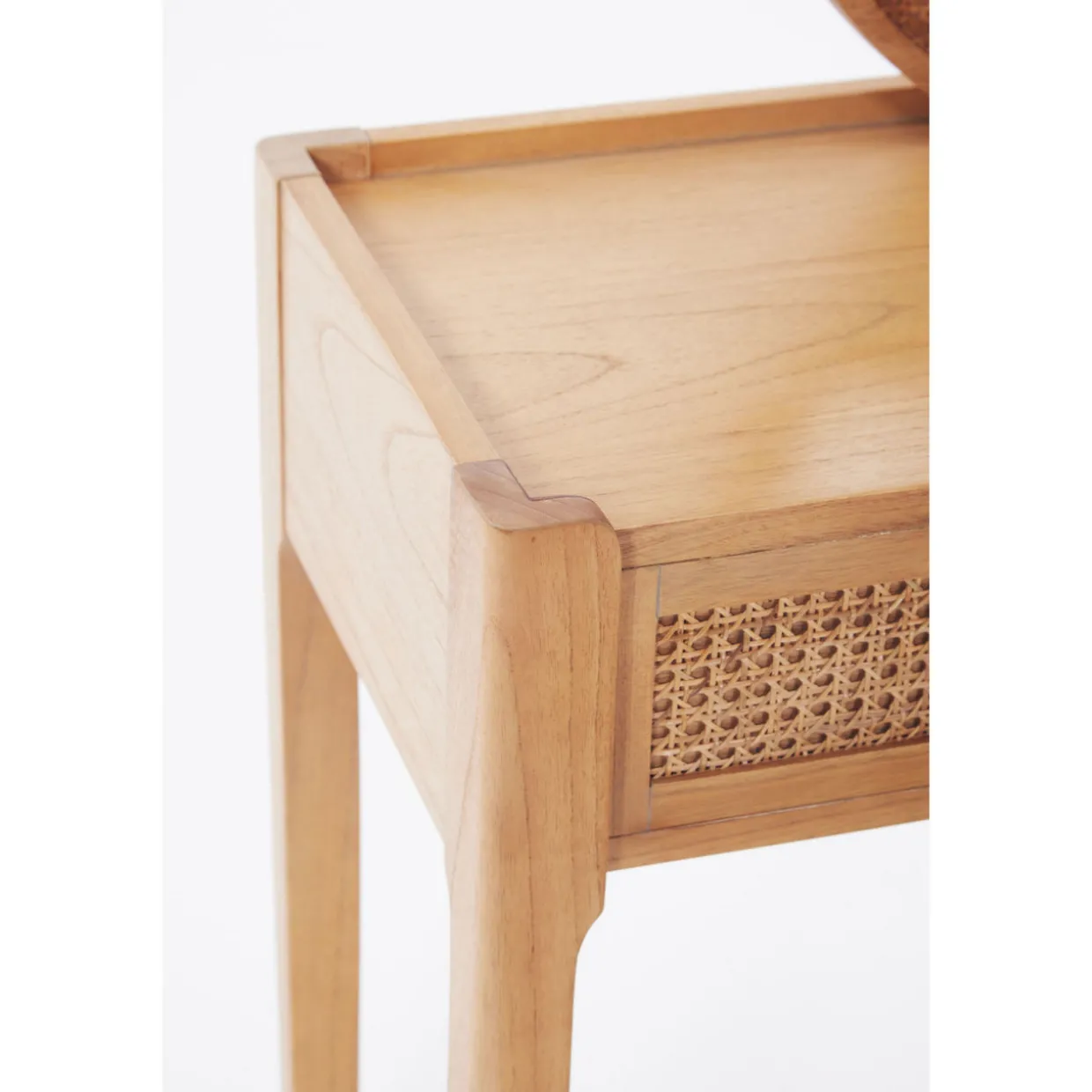 The Kawali bedroom collection is a gorgeous light mindi wood (white cedar) bedroom collection with a retro feel. The rattan style effect across the range combined with gold accents creates a light and refreshing range for your bedroom space, evoking a sense of warmth and sophistication.