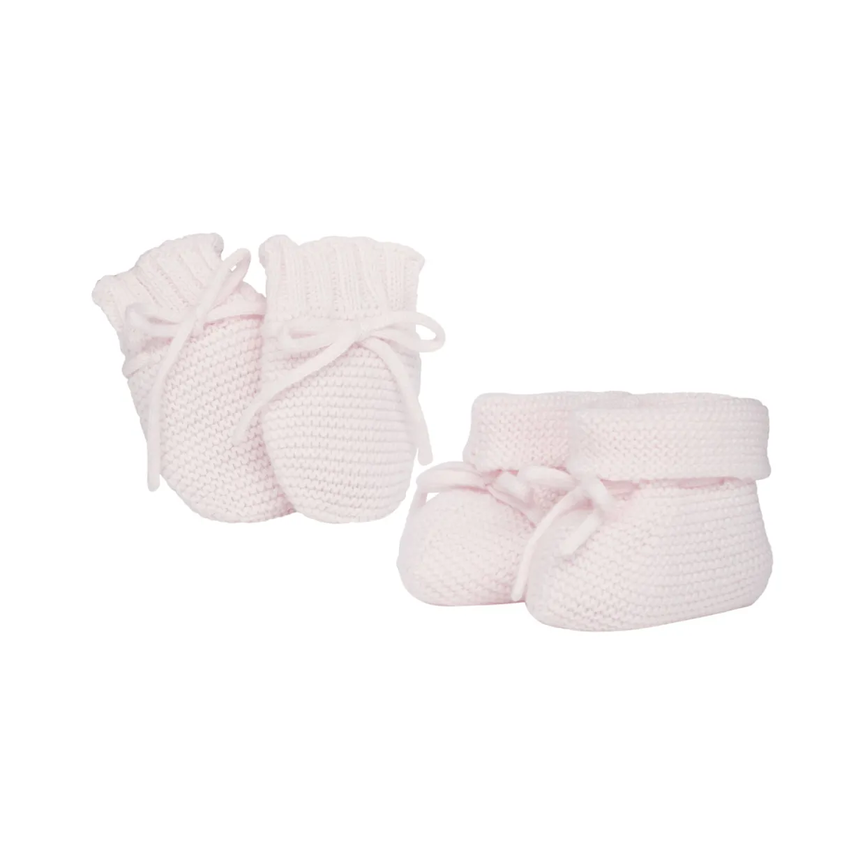 - Knit mitts and booties, soft plush squeak bunny toy