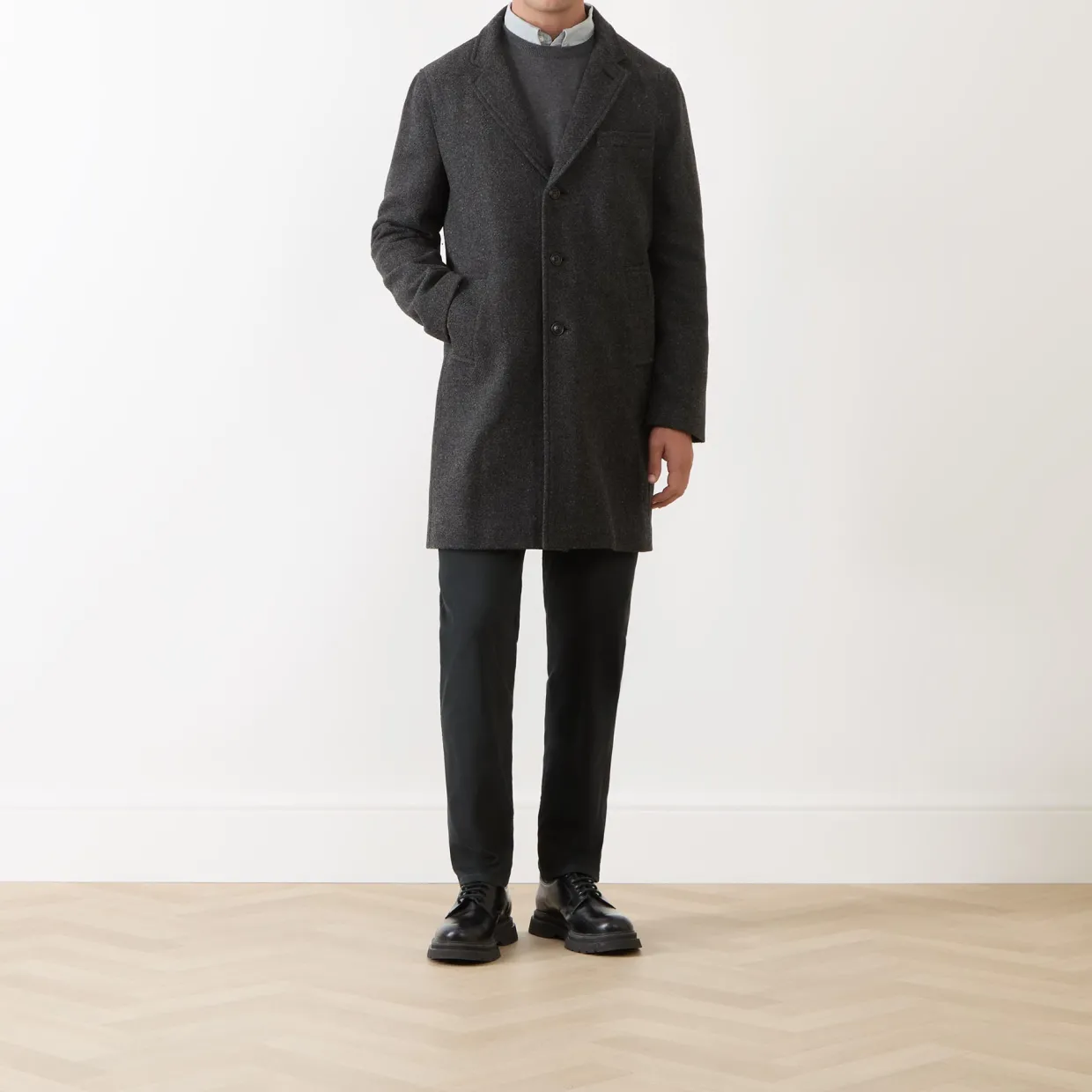 - Single-breasted, button fastening, notched lapels, chest pocket, side entry pockets, vent at rear, raised seam detail