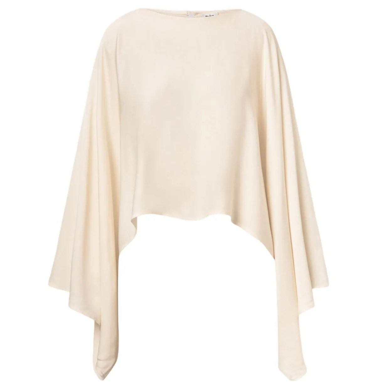 - Slash neckline, rear keyhole and button fastening, long waterfall sleeves, asymmetrical hem, smooth finish