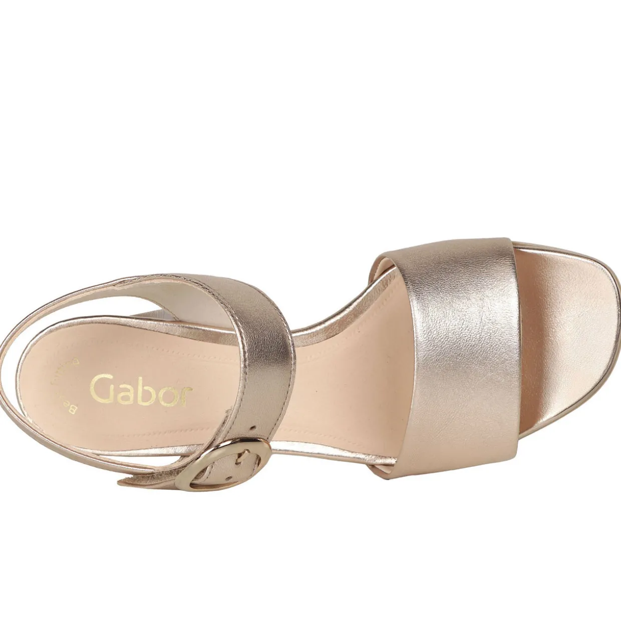 - Leather upper, covered block heel, stylish buckle detail, block heel, metallic finish