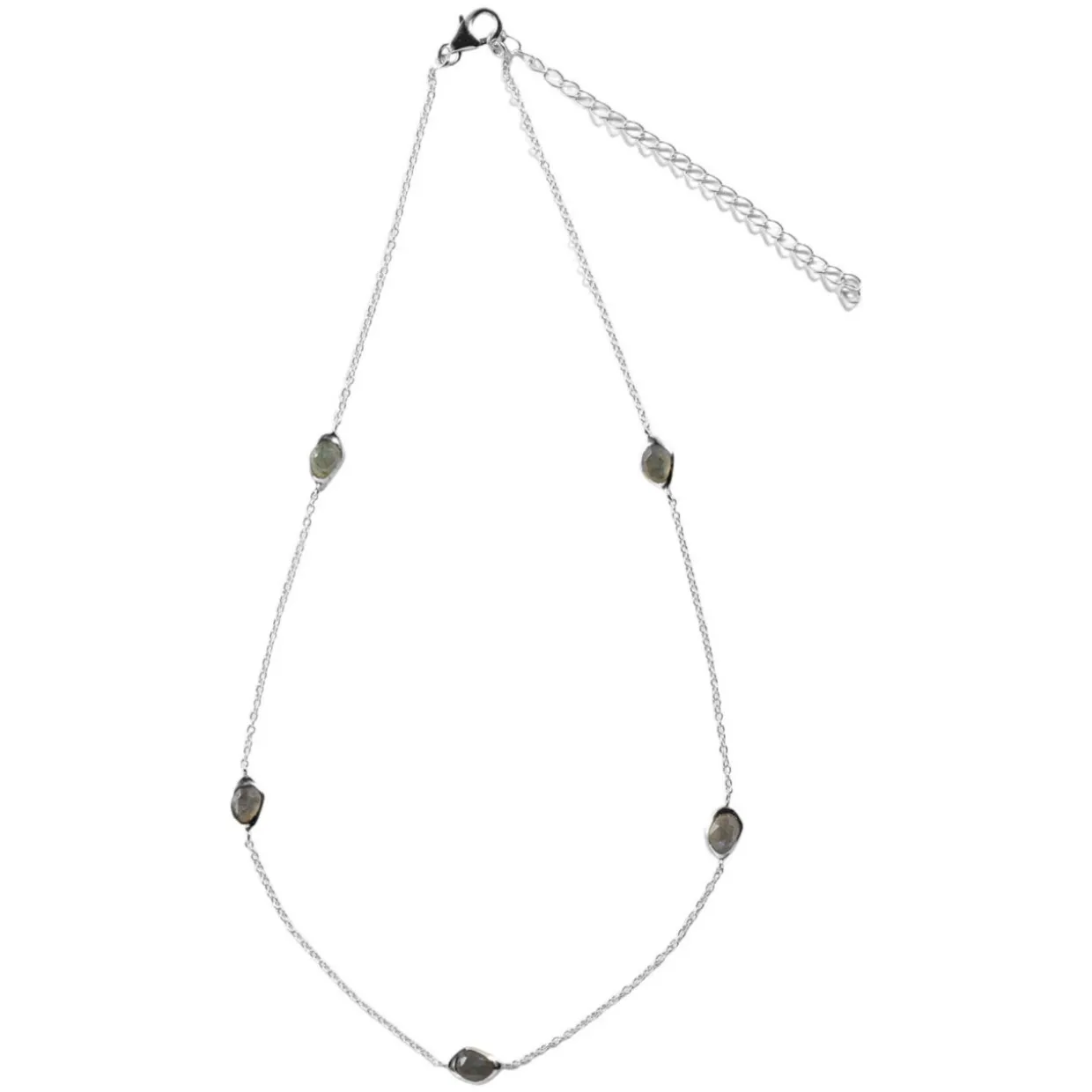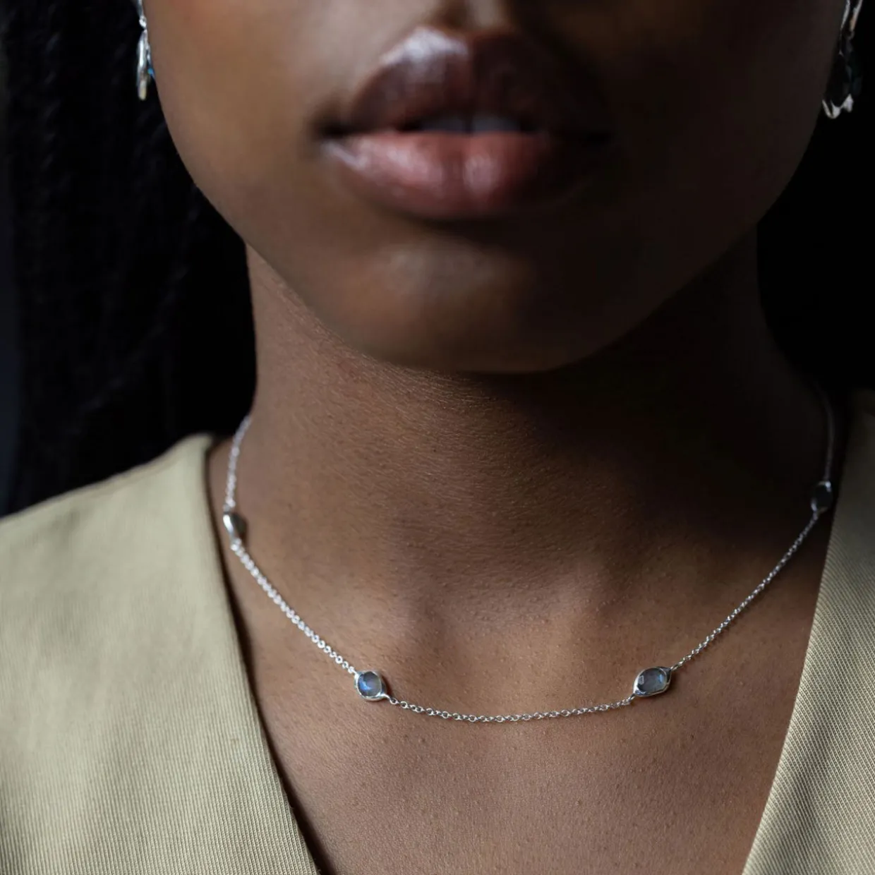 - Sterling silver, cable chain necklace, hand cut Labradorite natural gemstone charms