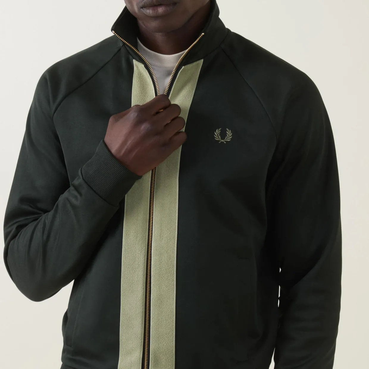 - Chenille panelling, long sleeves, funnel neckline, zip fastening, logo detail