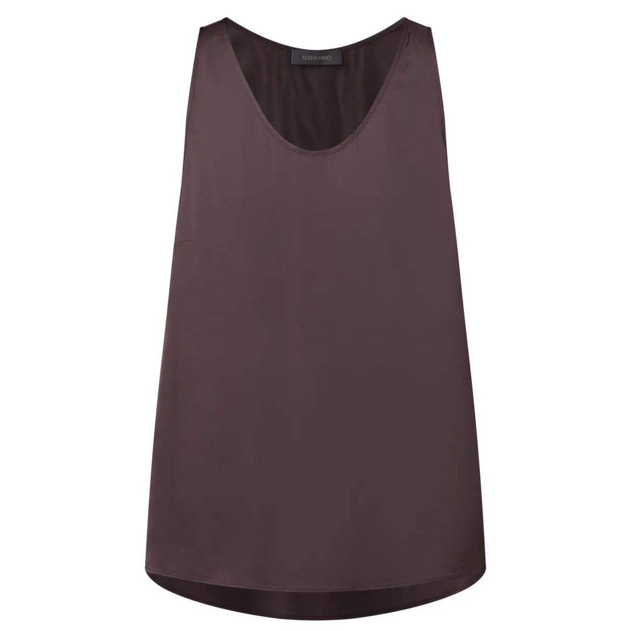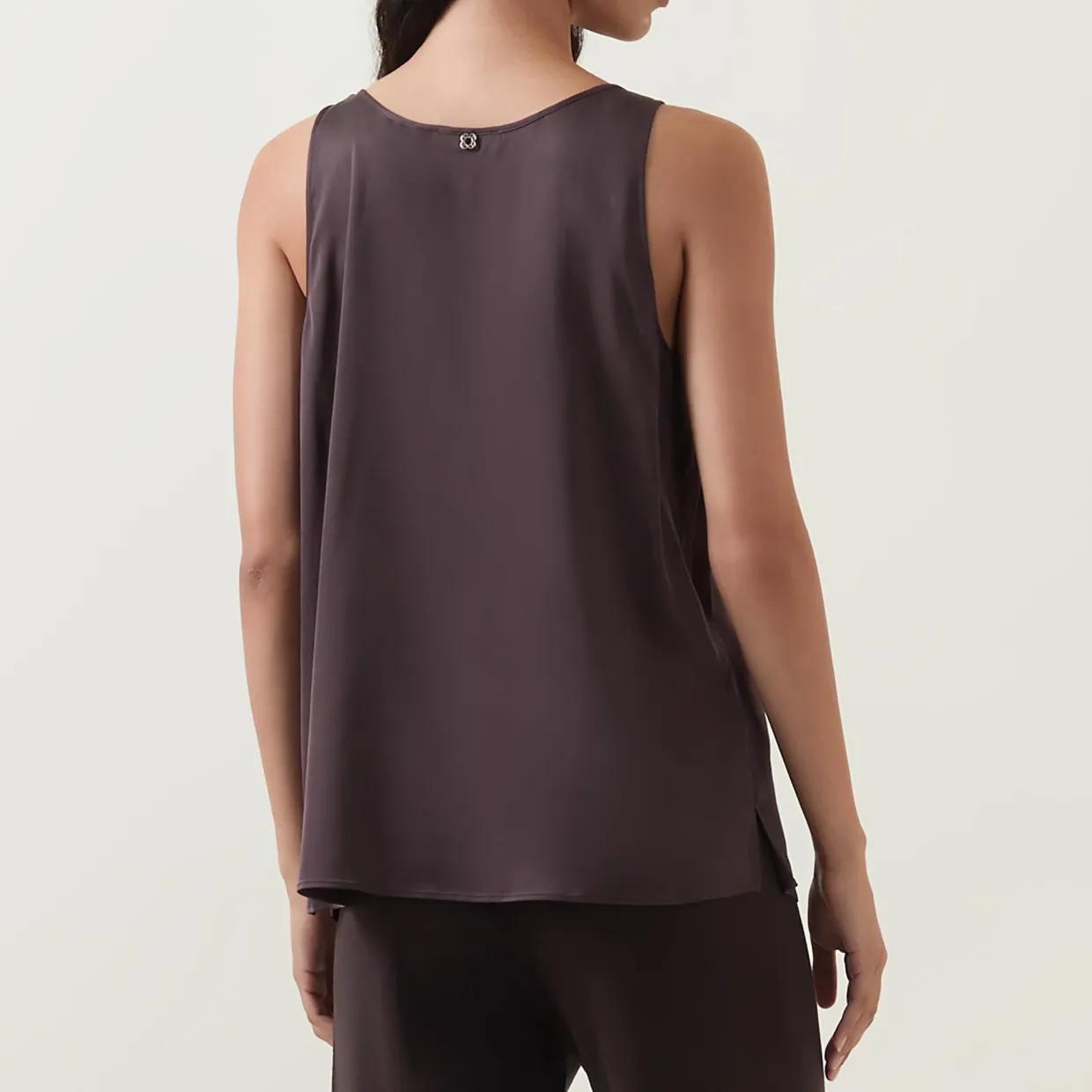 - Sleeveless, wide straps, scoop neckline, tonal stitching, smooth fabric, lightweight