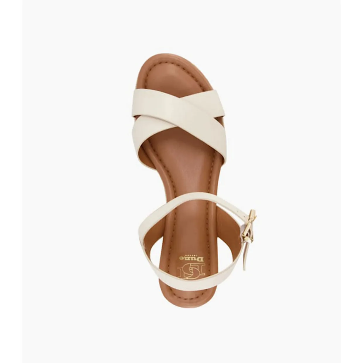 - Open toe, ankle strap, platform sole, buckle fastening, crossover straps.
