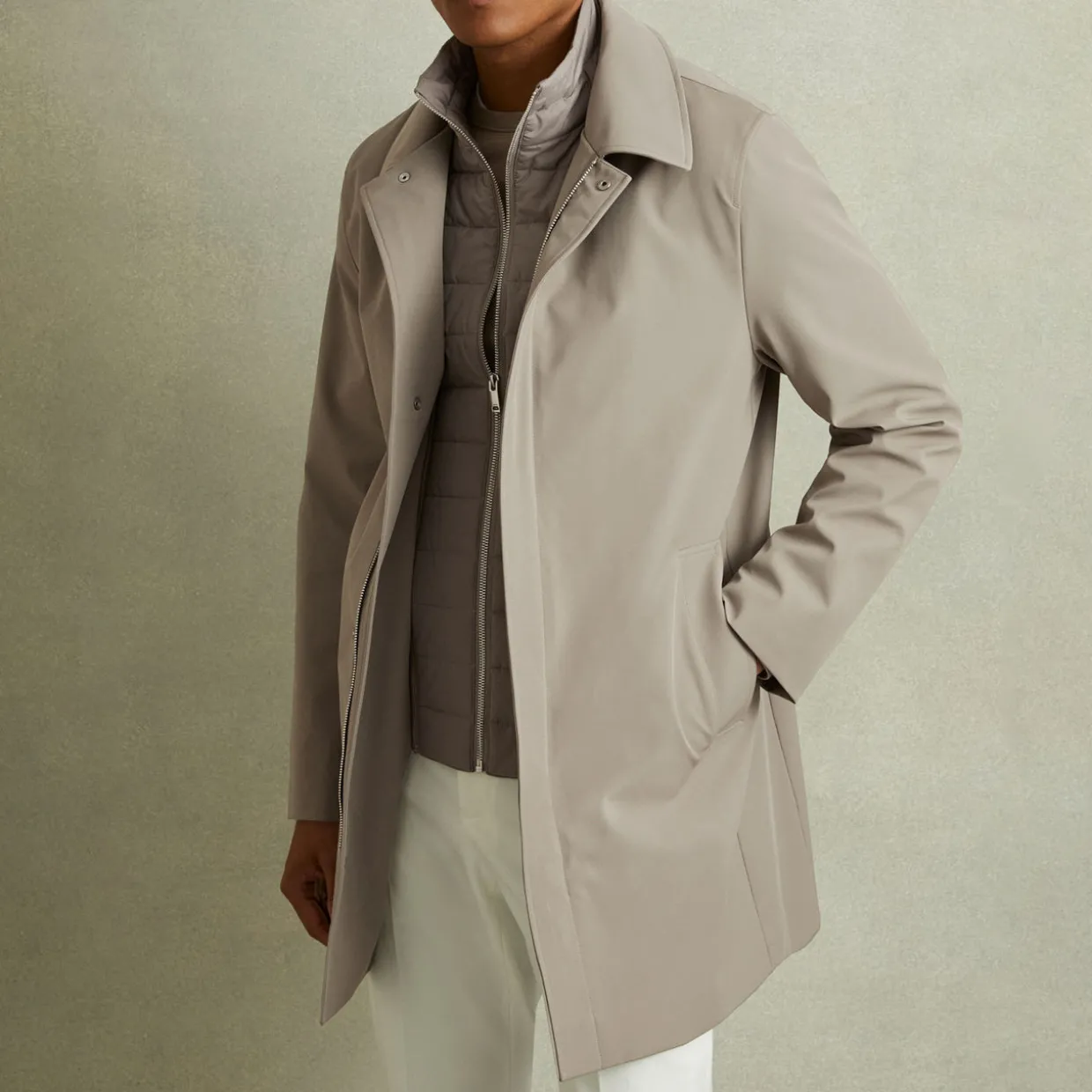 - Water-resistant exterior, multiple fleece lined pockets for functionality, removable funnel-neck insert, press-stud front, lined, vent to reverse, mid length, quilted, long sleeves