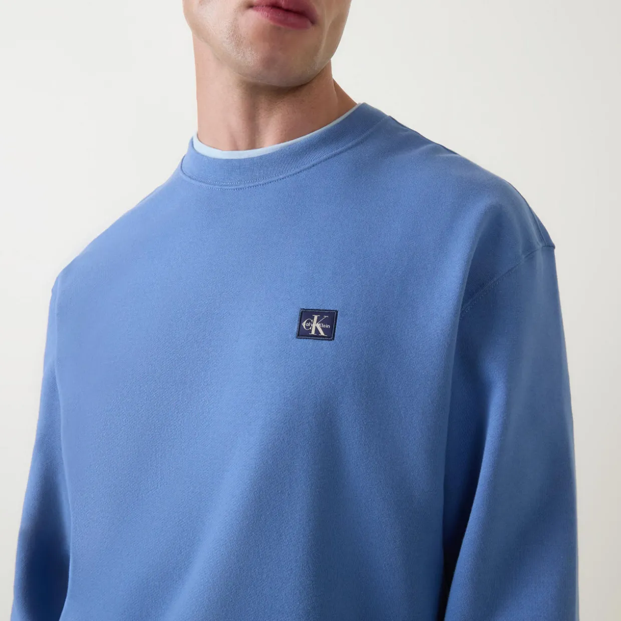 - Crew neckline, long sleeves, dropped shoulders, logo badge on chest, pullover style, elasticated hemline, stretch cuffs, smooth fabric
