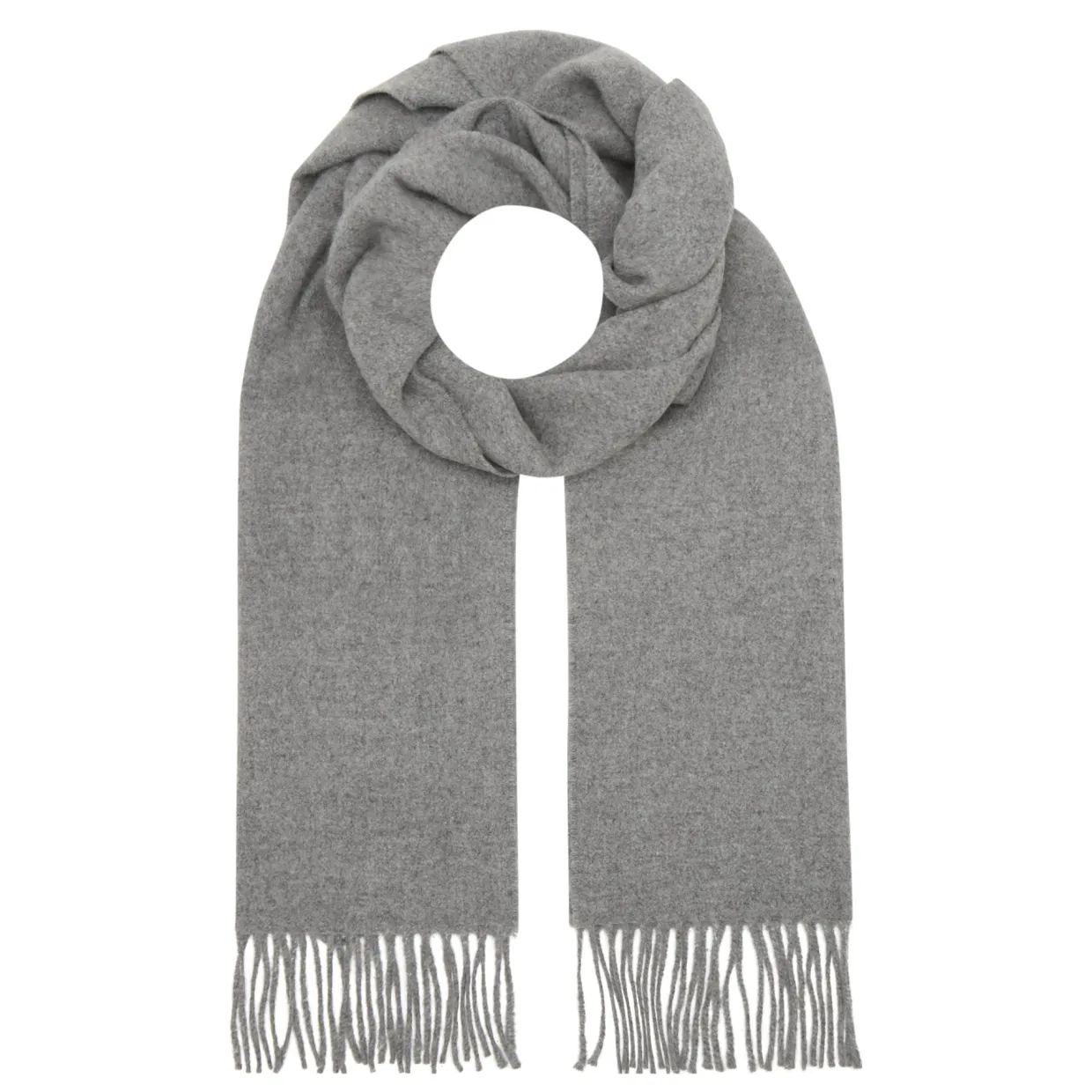 - Wrap style, tonal logo embroidery, fringe tassels, smooth fabric