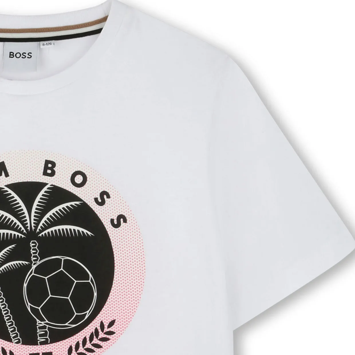 - Crew neck, short sleeves, logo graphic print on the front, woven logo label at side, regular fit