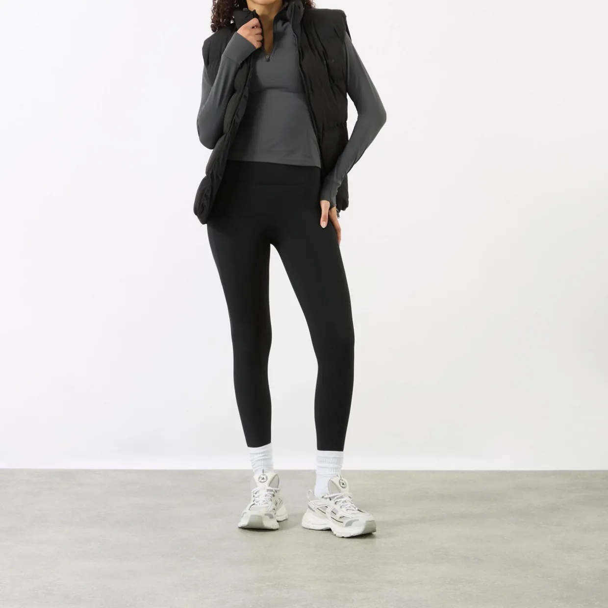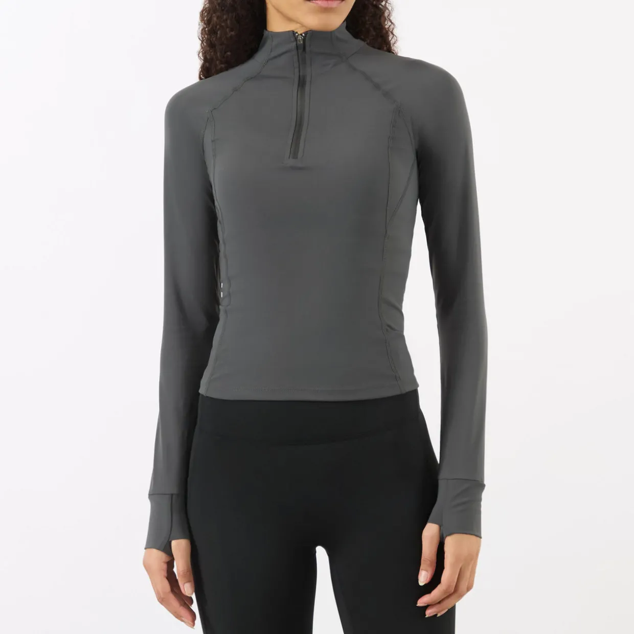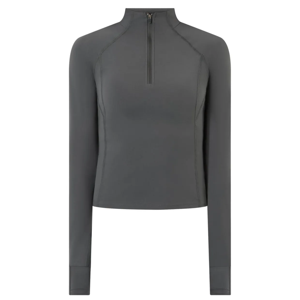- Funnel neck, quarter-zip fastening, long sleeves, straight hem, fitted throughout, smooth finish
