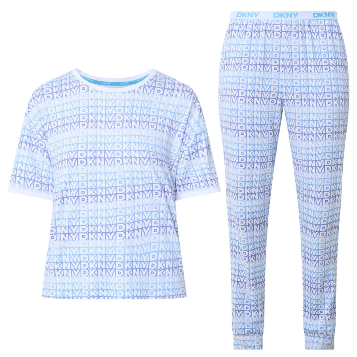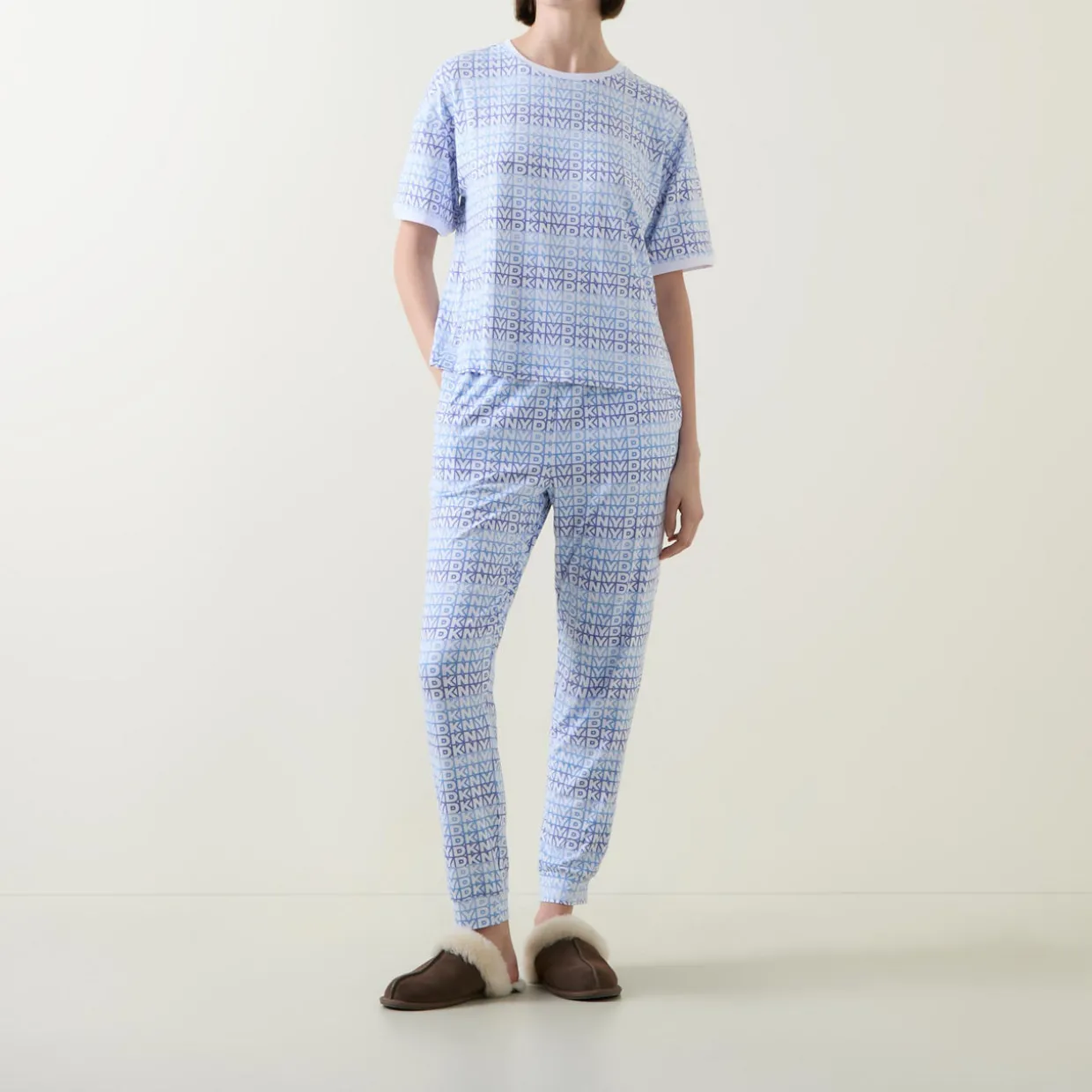 - T-Shirt: Short sleeves, round neckline, dropped shoulders, logo motif, straight hemline, smooth fabric. Bottoms: Elasticated logo waistband, two side in-seam pockets, logo motif, elasticated cuffs, smooth fabric