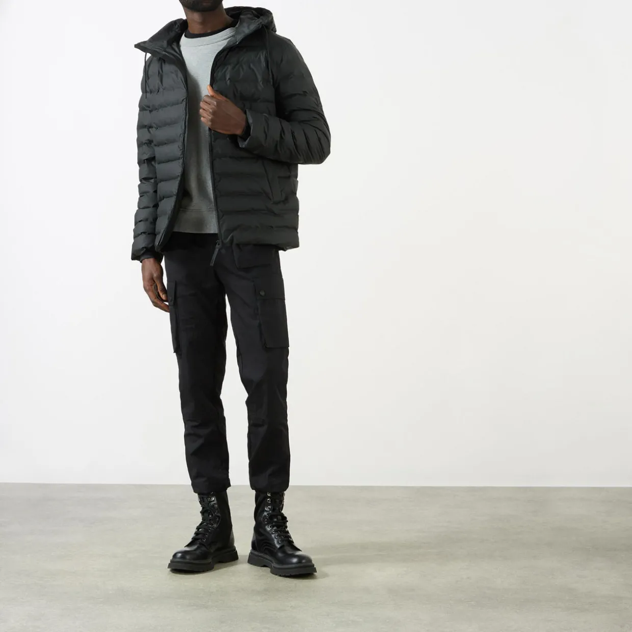 - Hood with adjustable drawstring fastening, long sleeves, elasticated jersey storm cuffs, two-way front zip fastening, two fleece-lined side slit pockets with zip fastening, one interior pocket with zip fastening, straight hem, all-over quilted design, padded, water-proof, wind-proof, lightweight, breathable, insulated, signature chambers