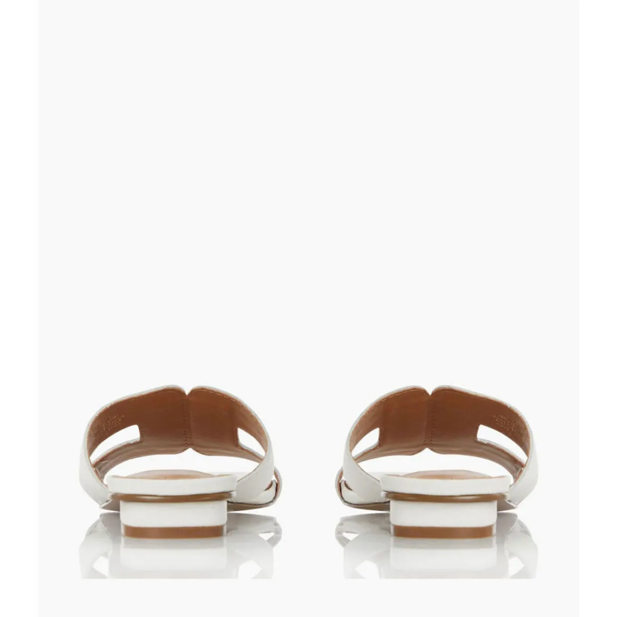 - Slip on style, open toe, cut-out straps, stacked heel.
