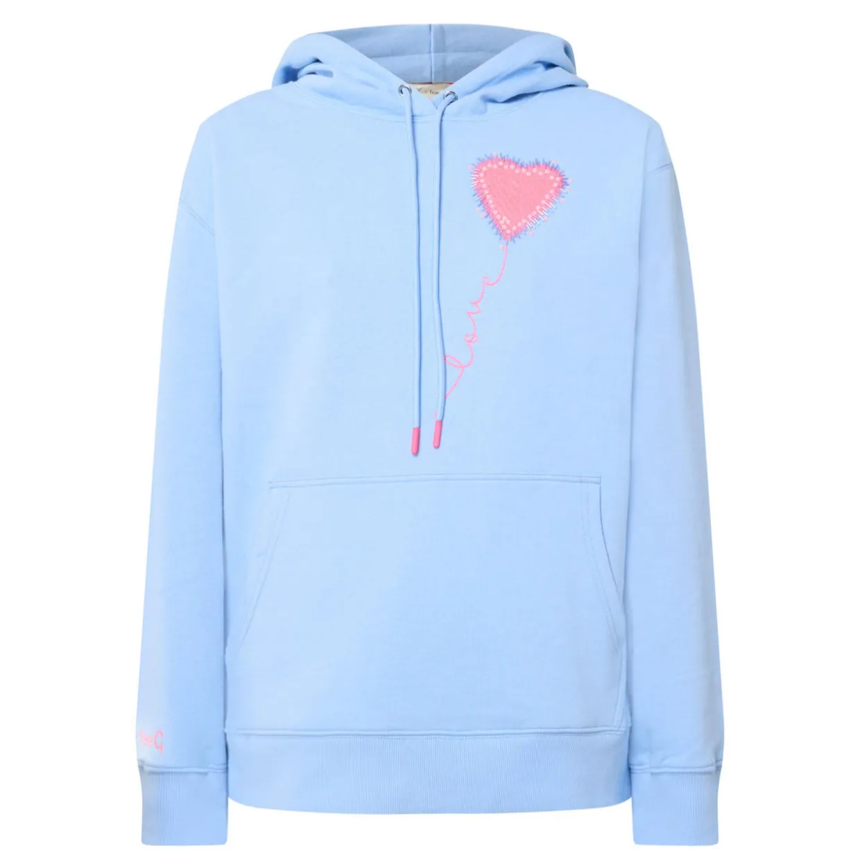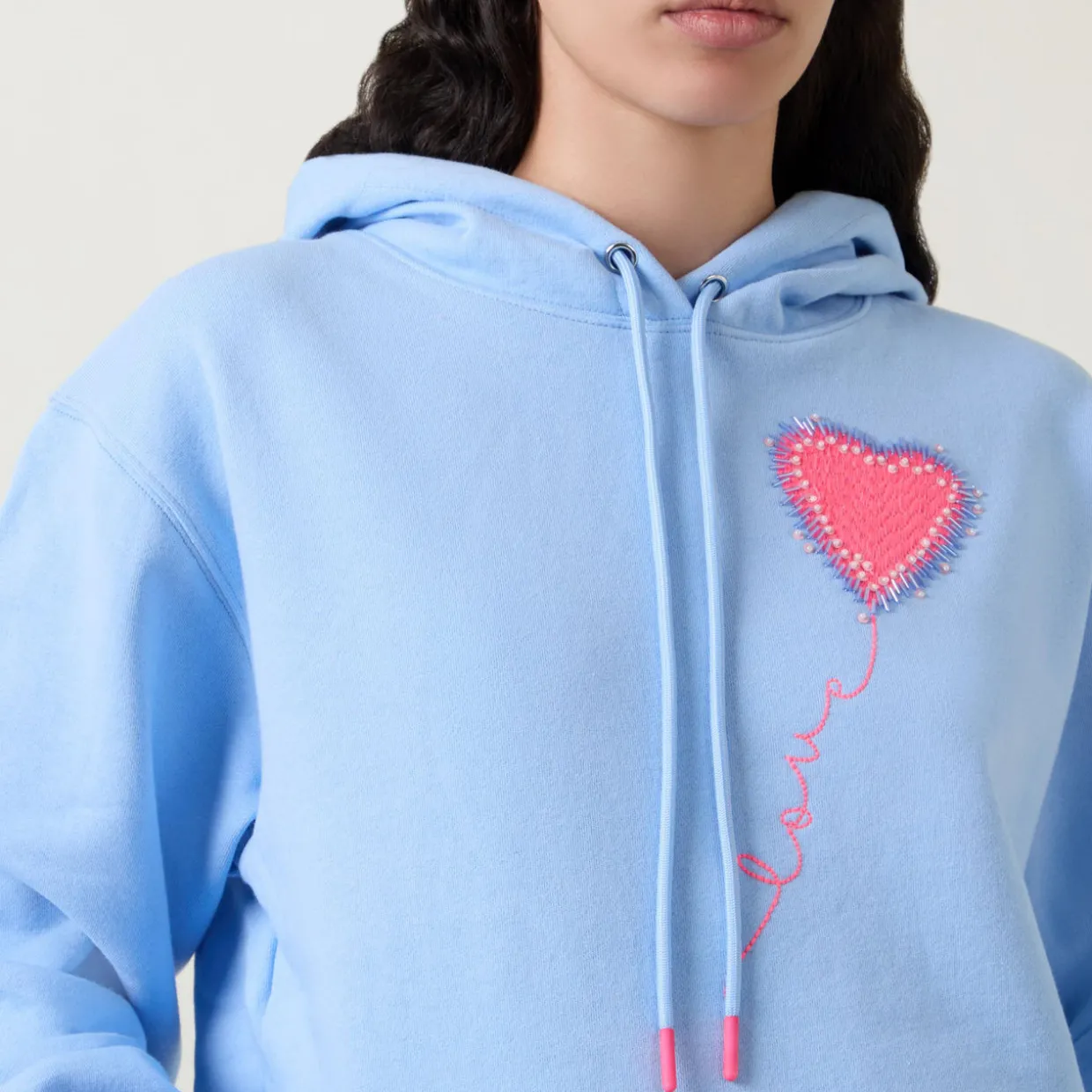 - Hooded, long sleeves, drawstring fastenings, love heart motif, pouch pocket, ribbed trims