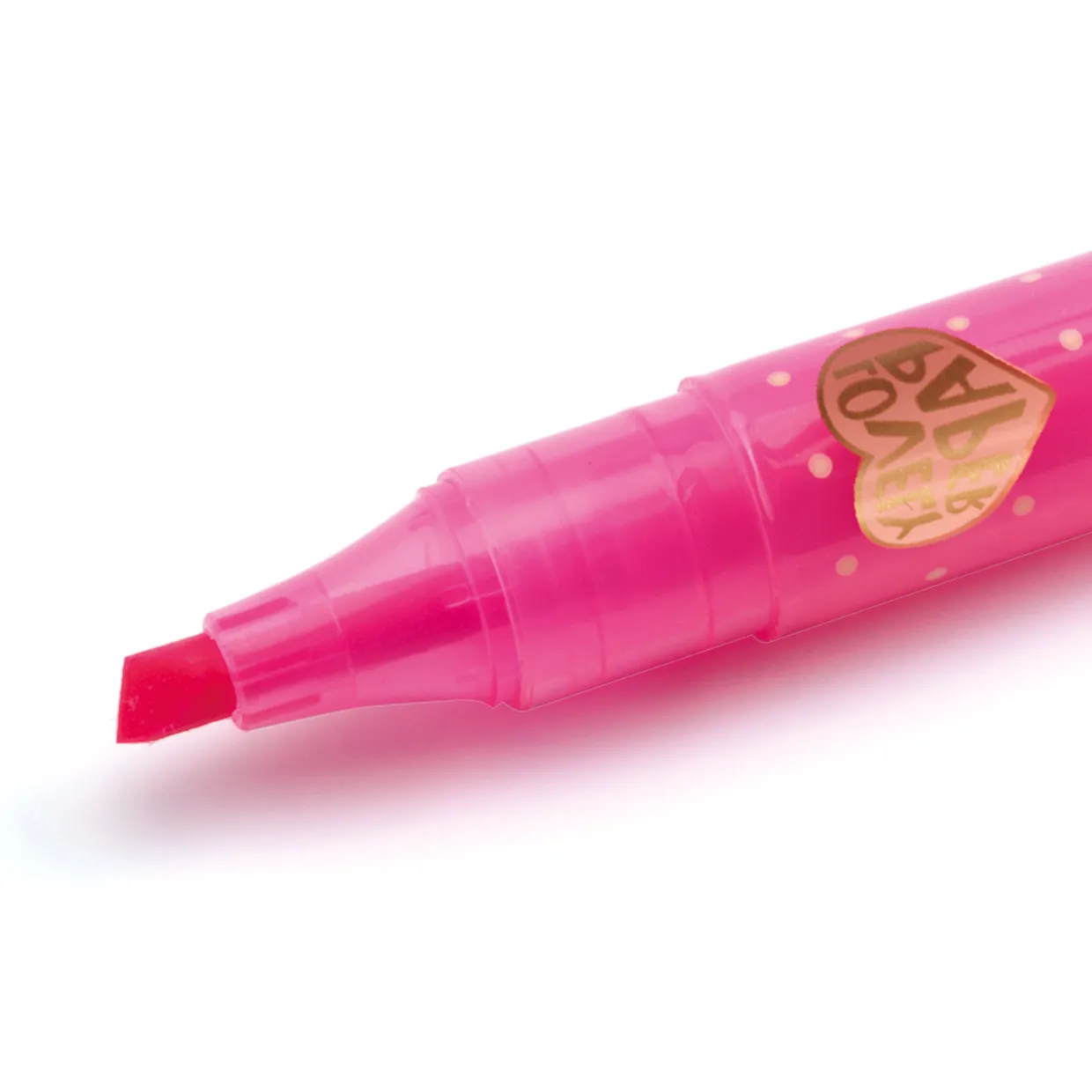 - Six mini highlighters, transparent case, hanging clip on the cap