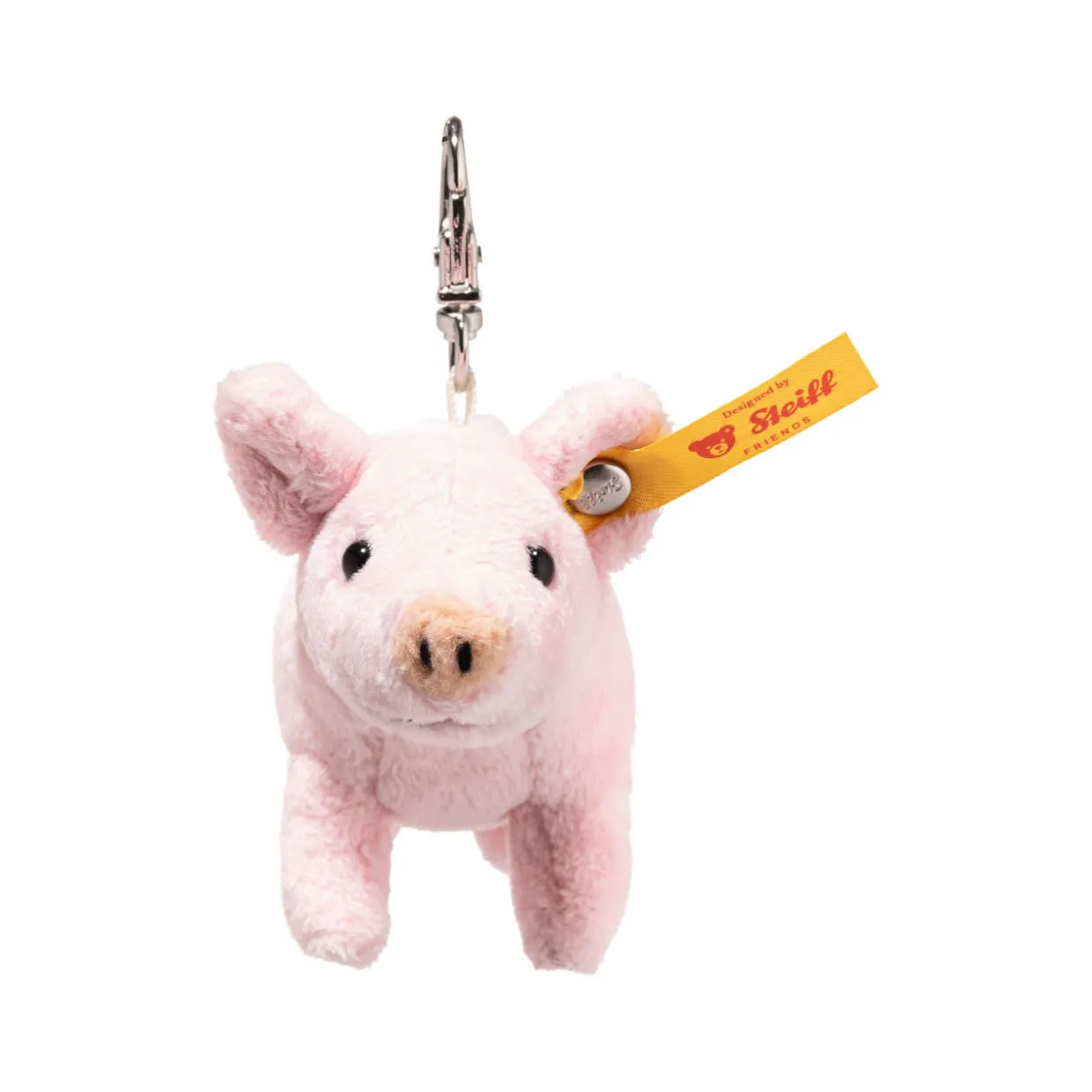 - Soft plush style, pig design, carabiner fastening, stainless steel ‘Button in Ear’, standing pose, safety eyes, Steiff logo tab