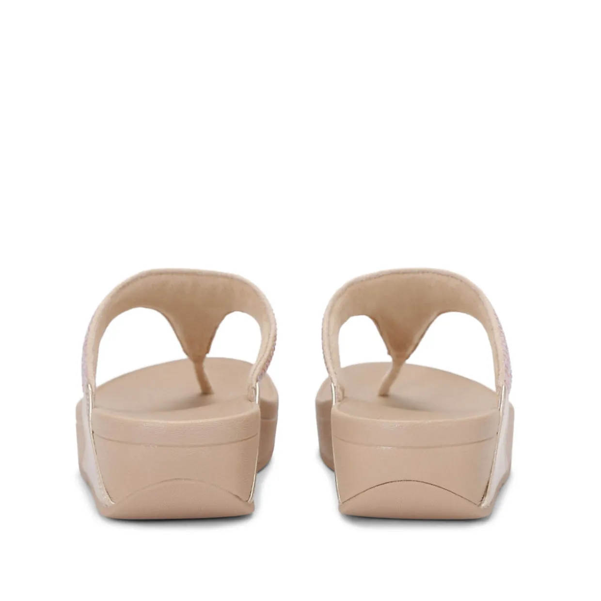 - Crystal-embellished foot strap, slip-on style, toe post, round open toe, chunky sole