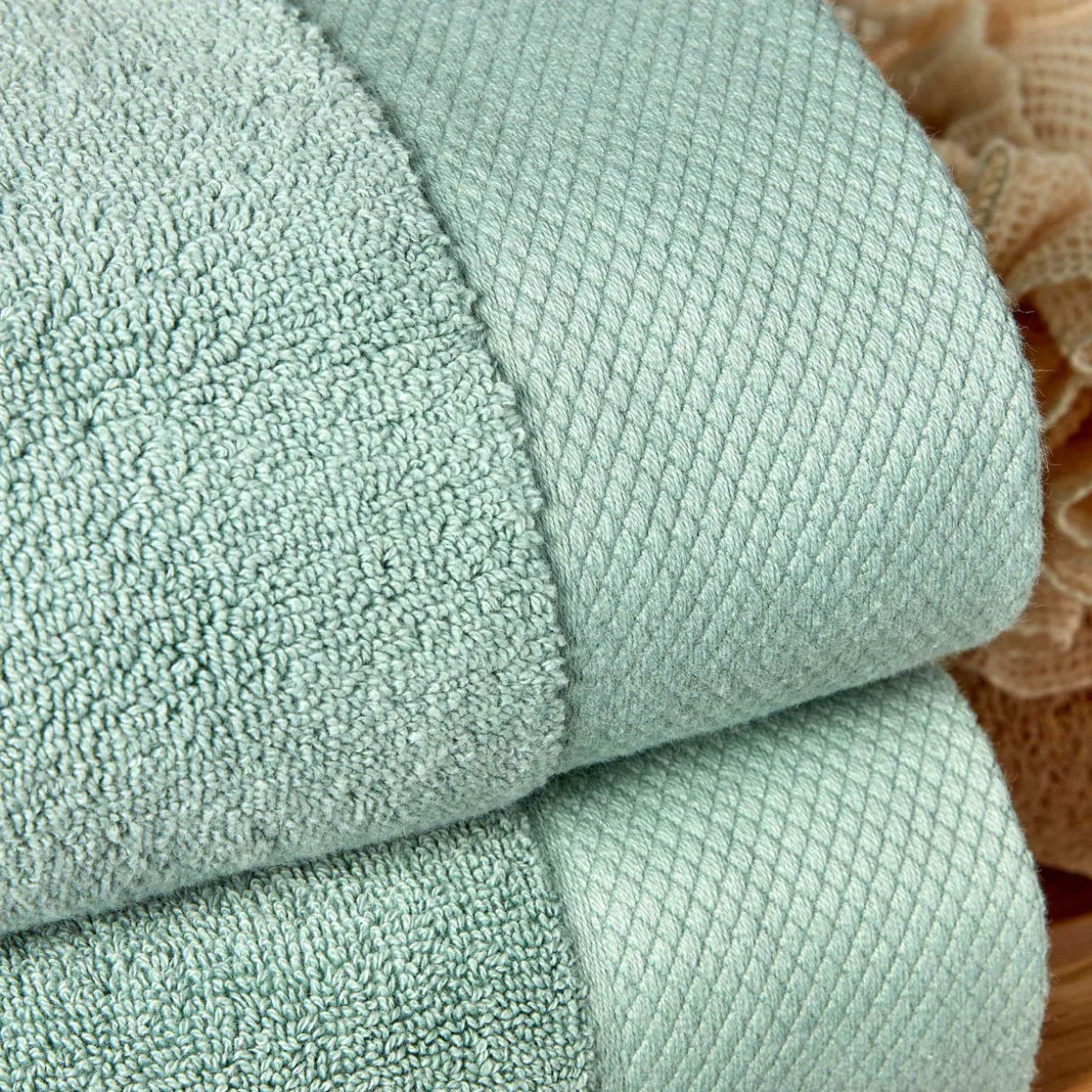- Thick, velvety feel, plush fabric, absorbent, detailed trim