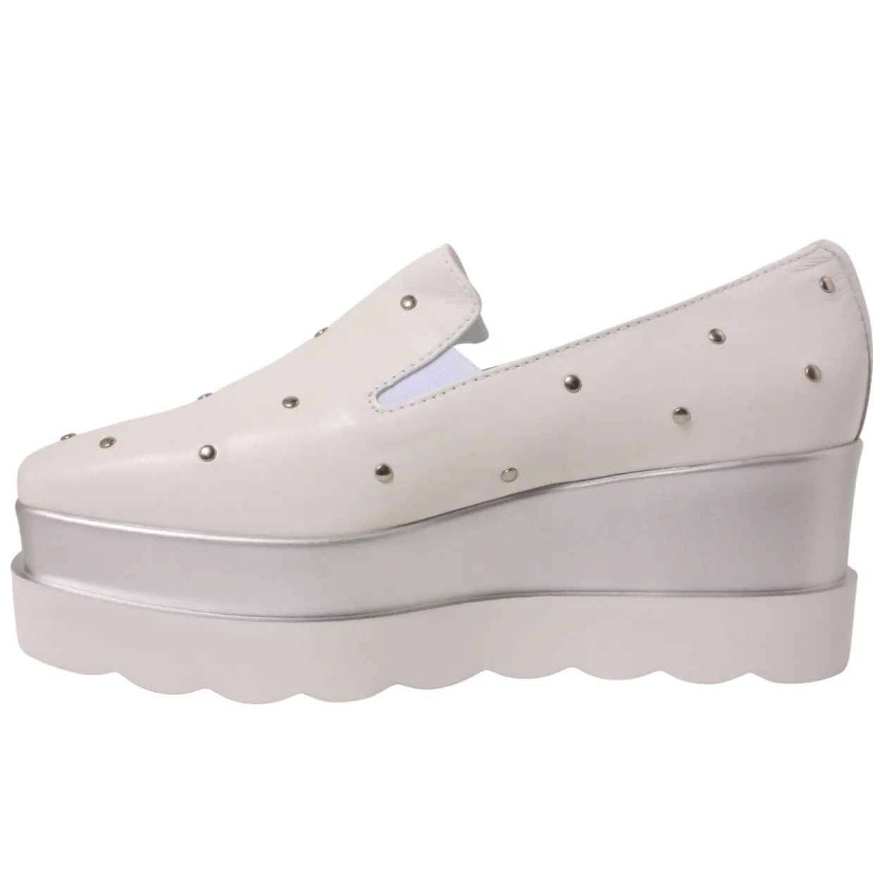 - Slip-on high wedge shoe with stud detailing