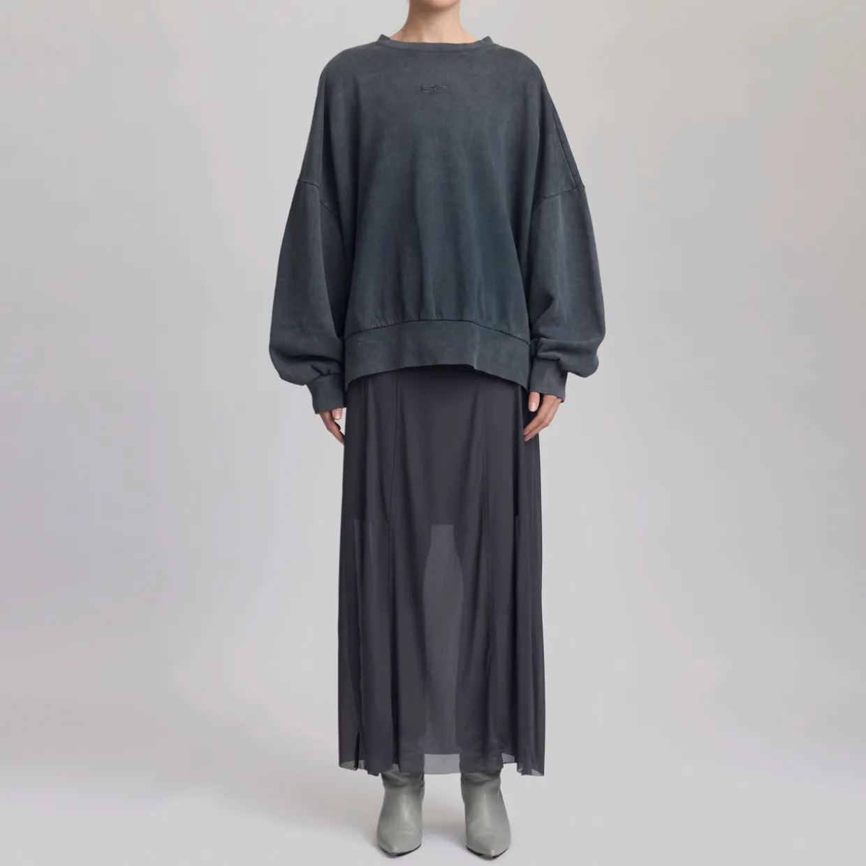 - Round neckline, long sleeves, ribbed trims, dropped shoulders, acid-wash finish, embroidered logo detail