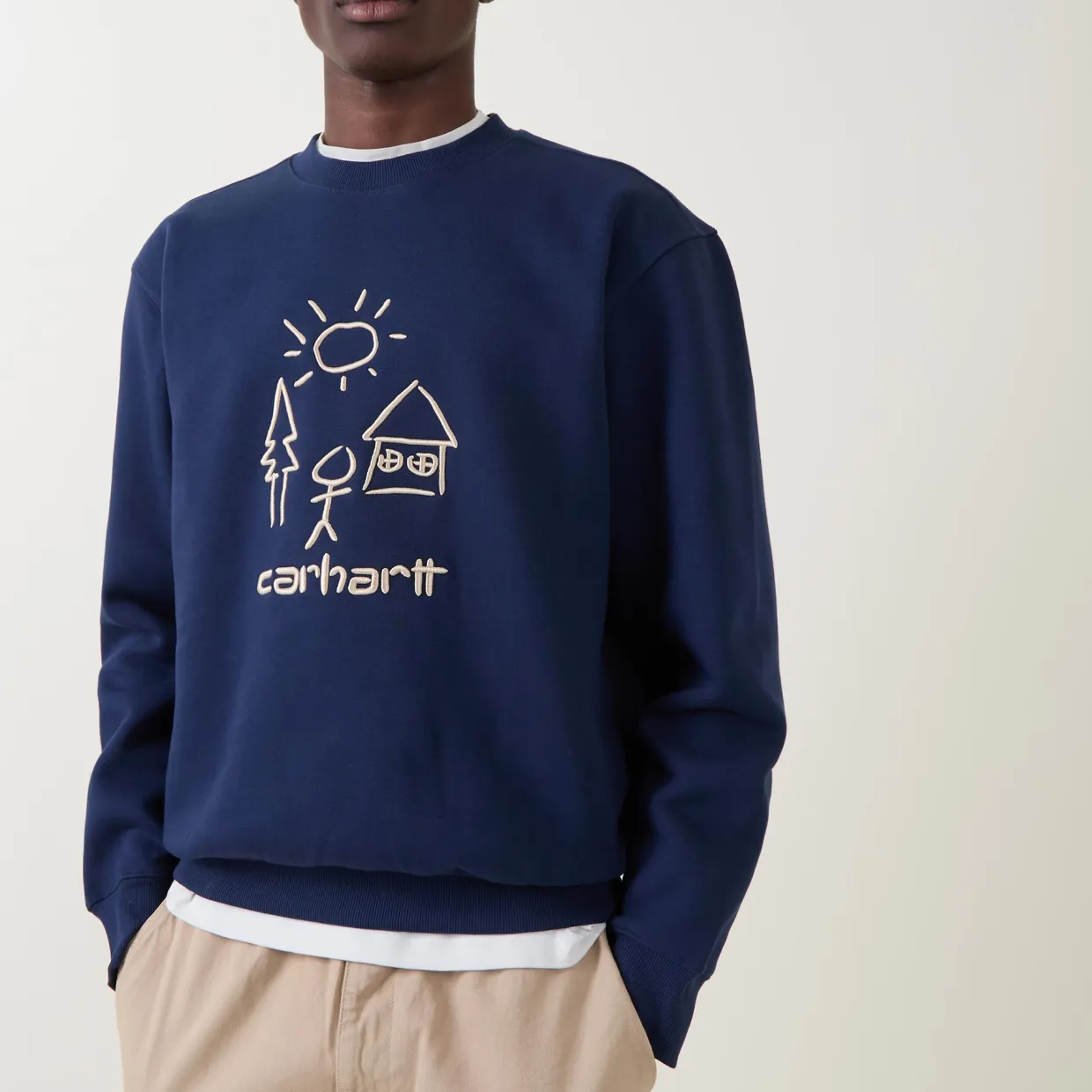 - Crew neckline, long sleeves, straight hemline, ribbed trims, logo detail