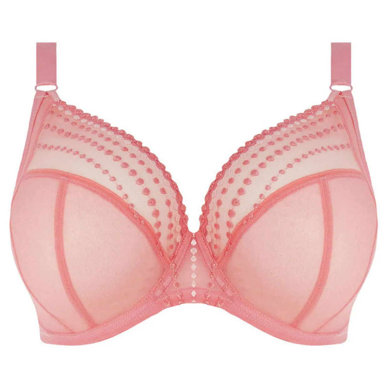 - Underwire, hook fastening, sheer top panels with embroidery detailing, side support panels