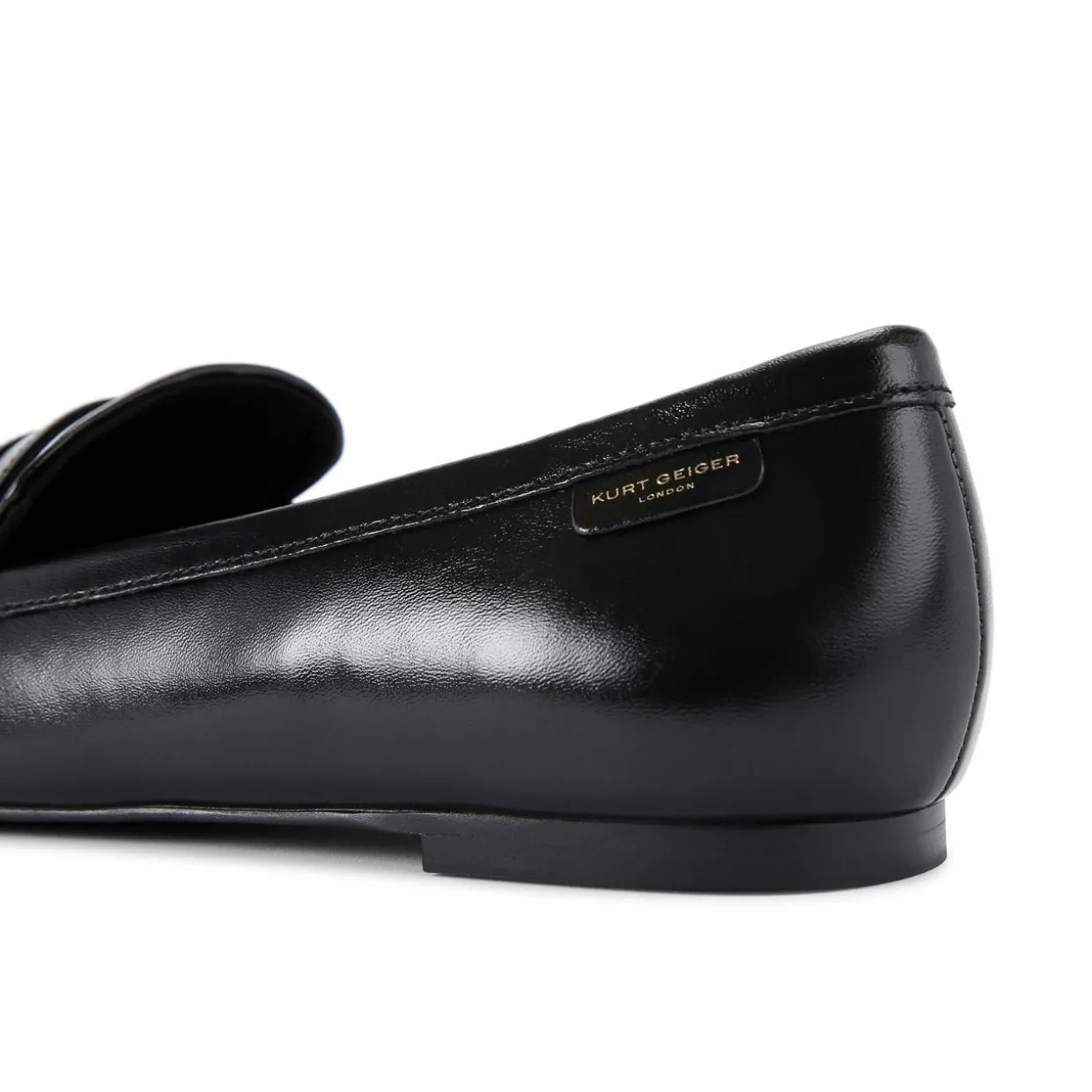 - Leather upper, almond toe, strap detail, antiqued brass buckle, eagle head stud, slip-on style