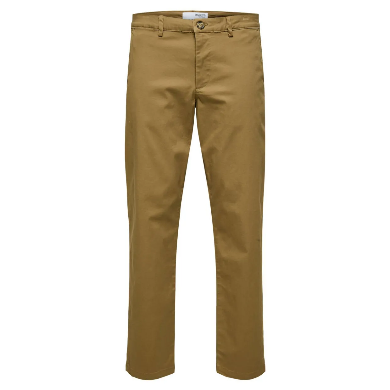 - Regular waist, straight fit, zip and button fastening, back welt pockets, belt loops.