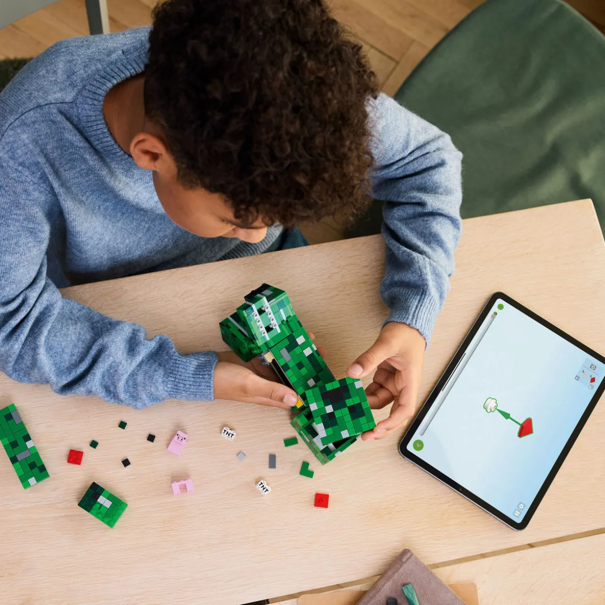 - 665 pieces, Minecraft® Creeper™ figure, gaming decor, build and display, posable figure, collectible