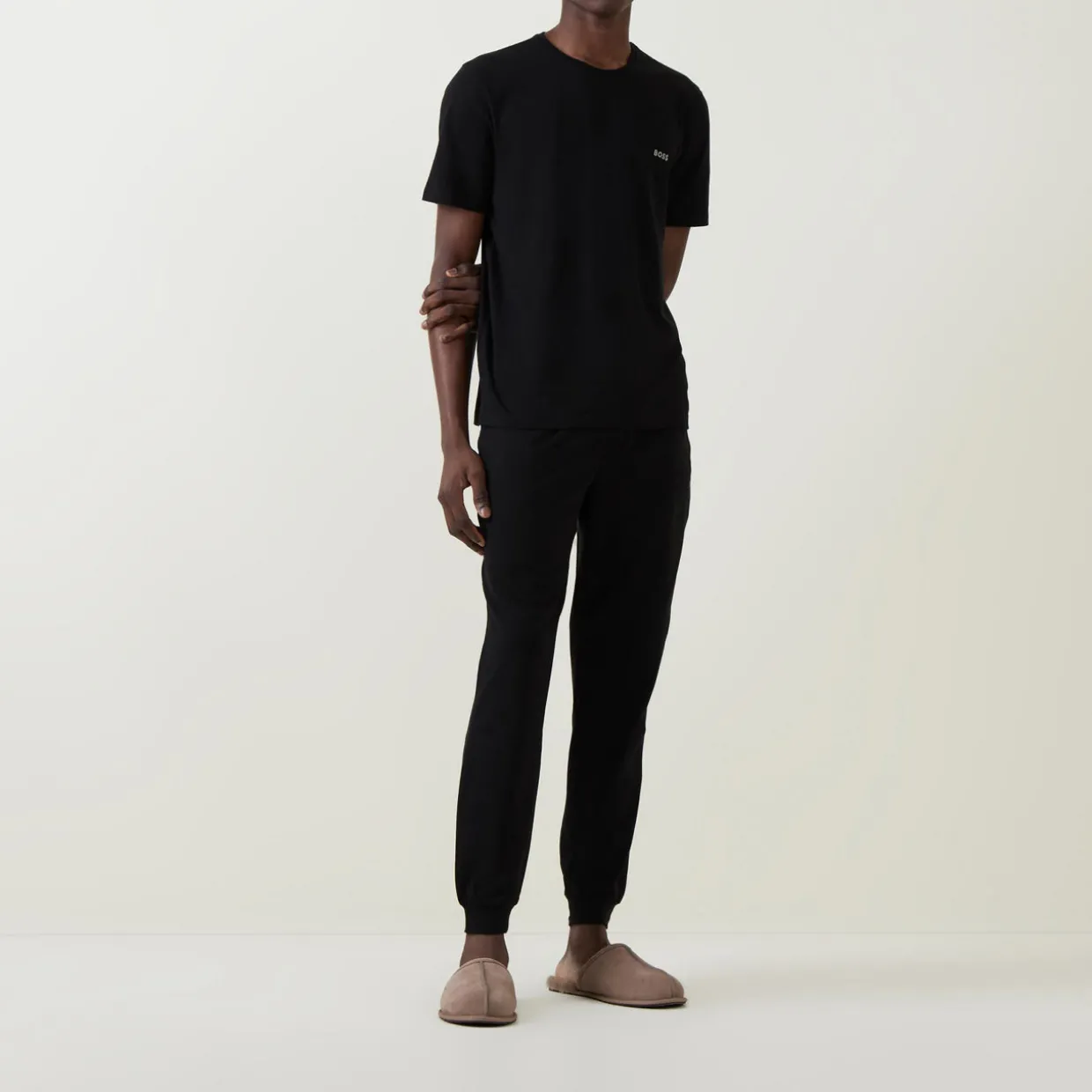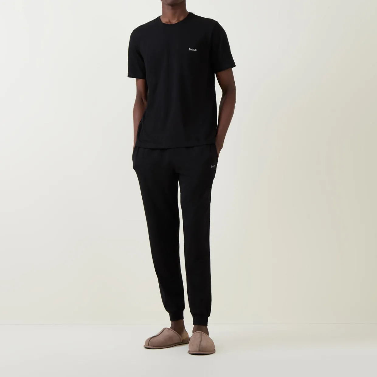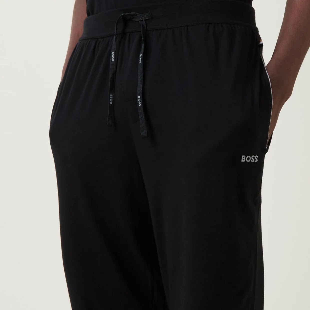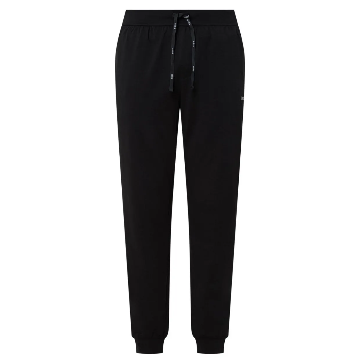 - Mid-rise, tapered leg, elasticated waistband, adjustable logo drawstring fastening, two side entry pockets, cuffed ankles, contrast logo detail, logo tag, smooth finish