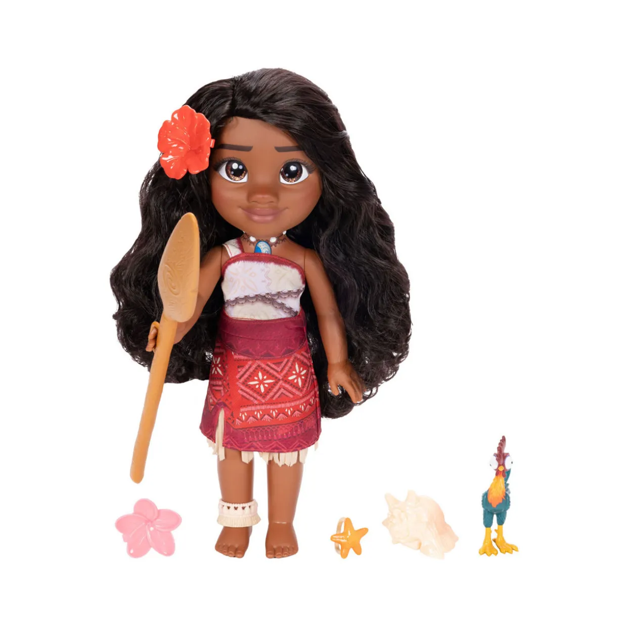 - This set includes: 1x Moana Doll, 1x Heihei Figure, 1x Oar, 2x Hair Accessories, 1x Shell