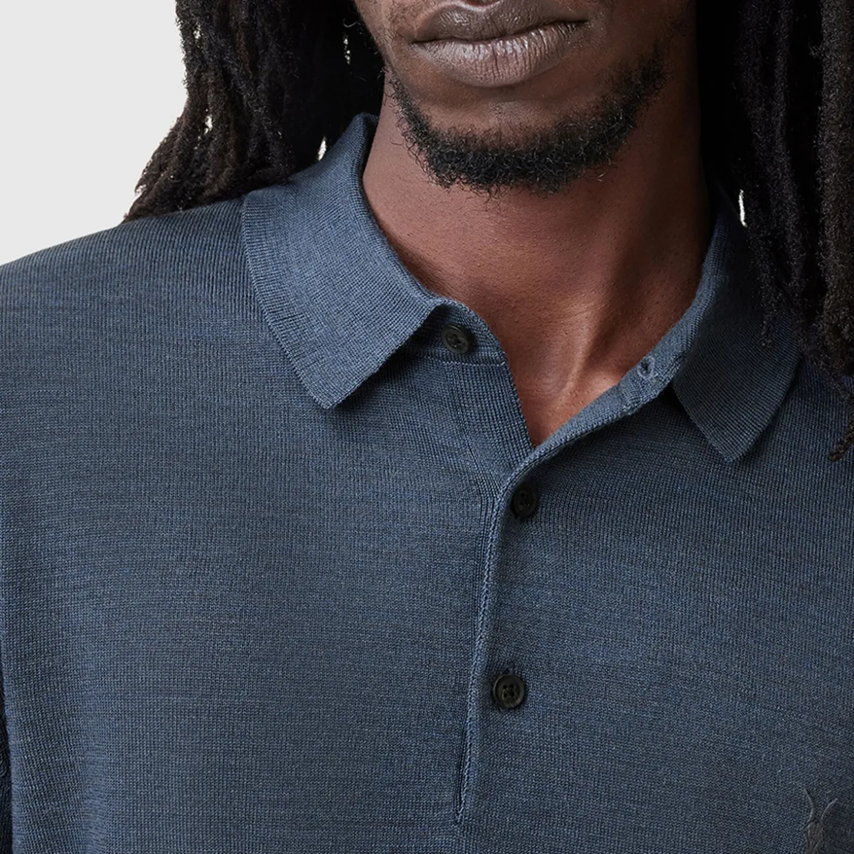 - Polo collar, three-button placket, long sleeves, Ramskull logo embroidery, ribbed hemline and cuffs, flat-knitted finish