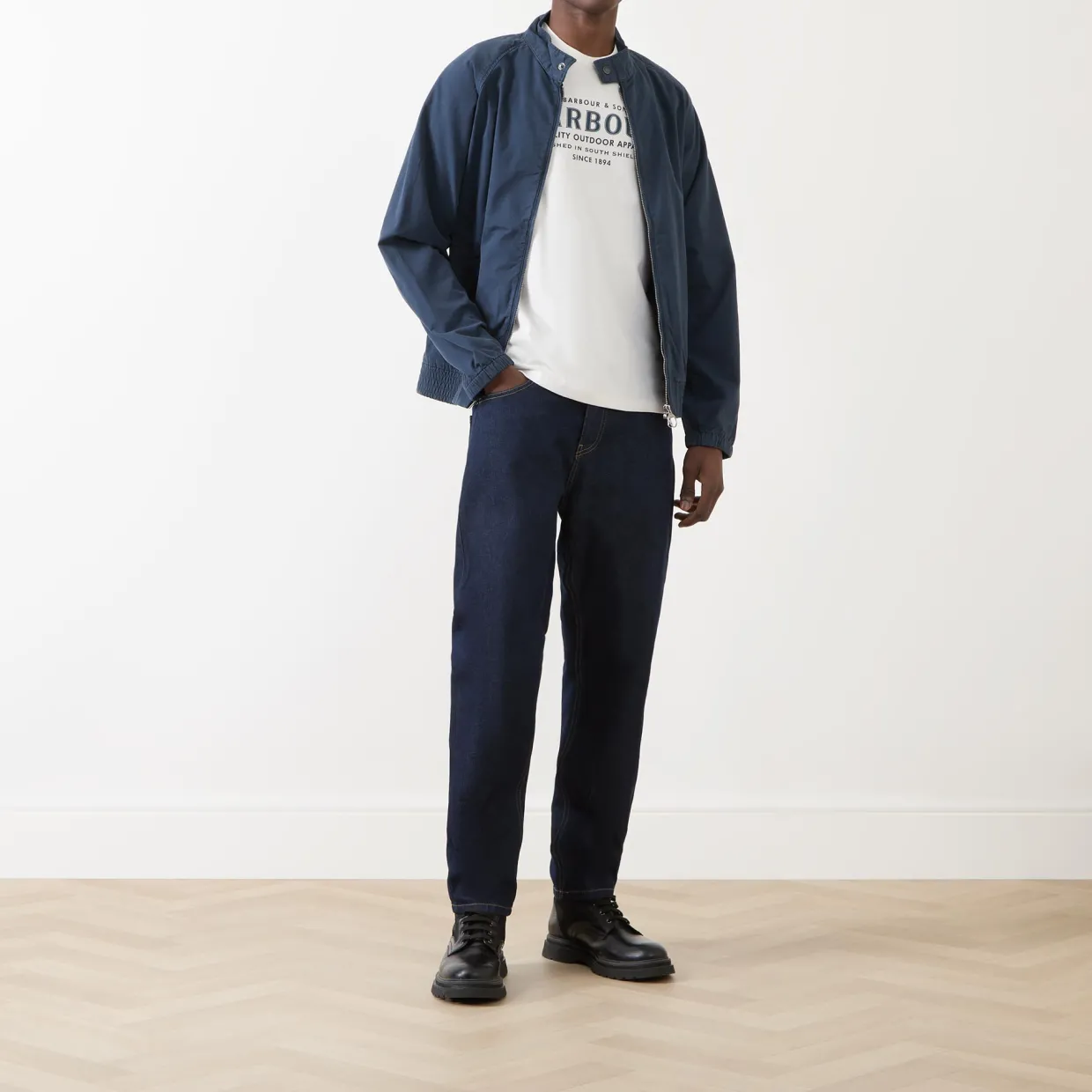 - Crew neck, archive-inspired graphic logo print across chest, jersey fabrication