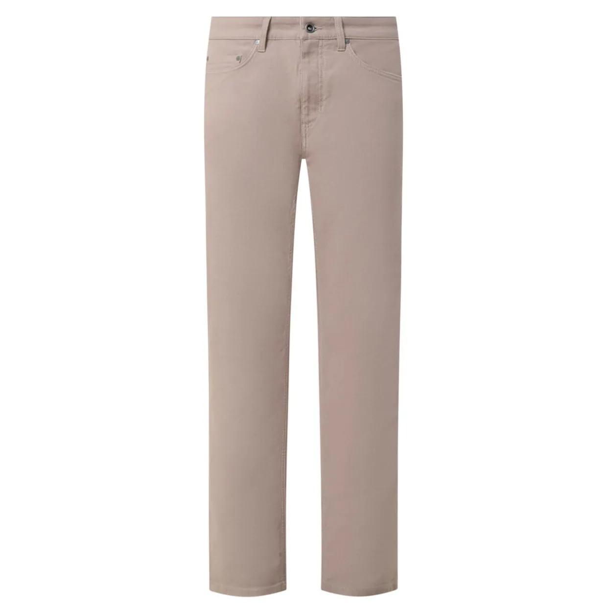 - Button and fly zipper fastening, five pocket style, belt loops, logo badge