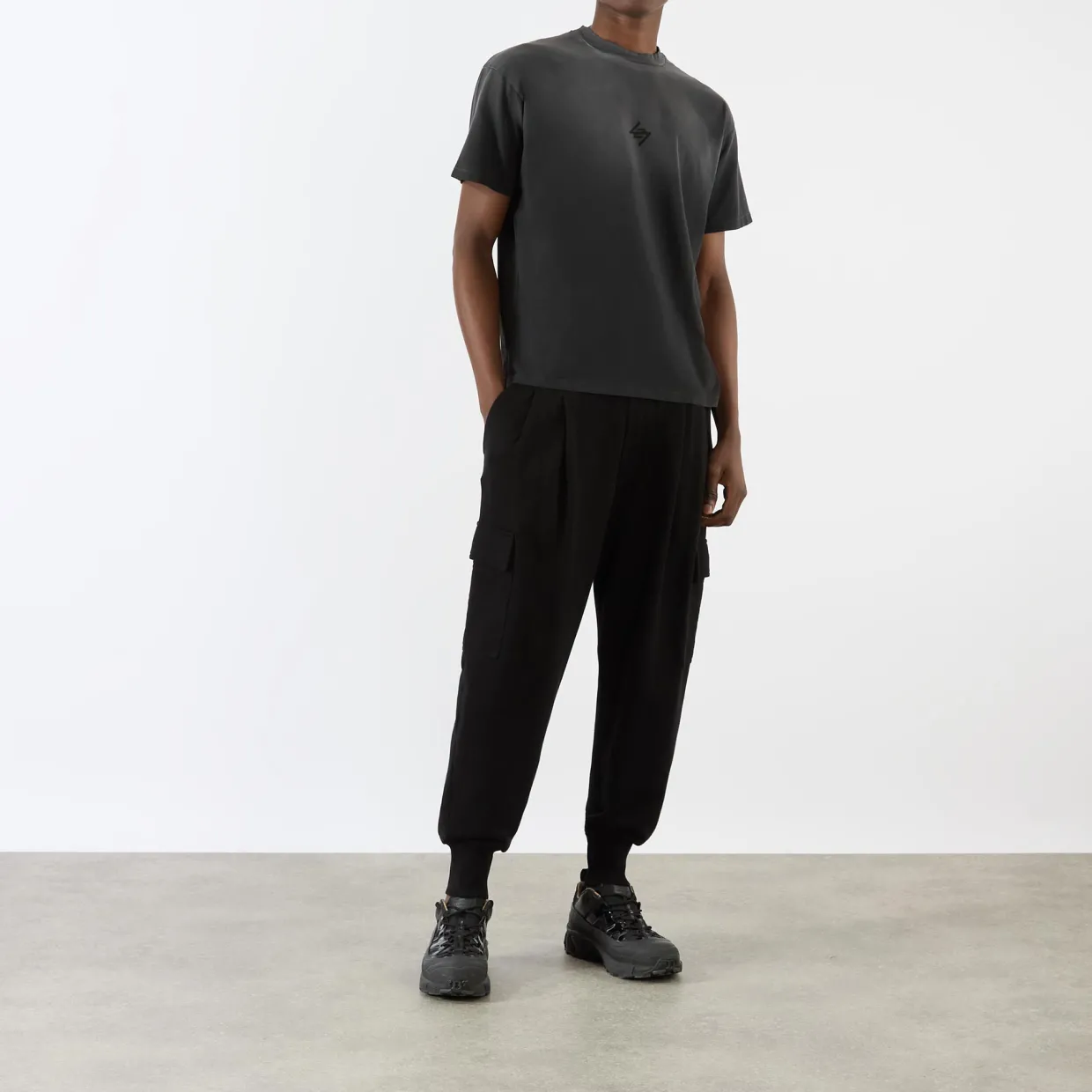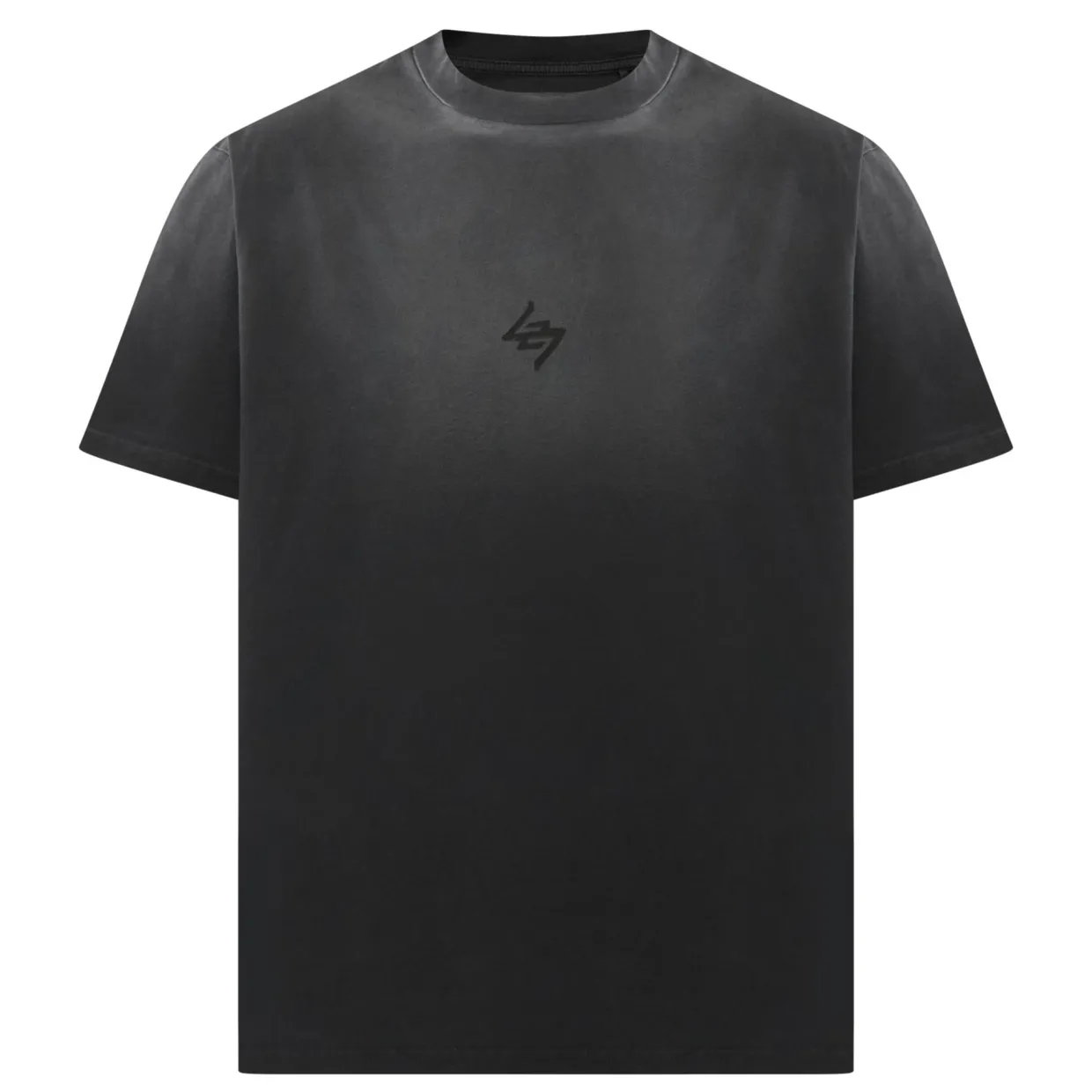 - Round neckline, short sleeves, dropped shoulders, straight hemline, faded details, logo print