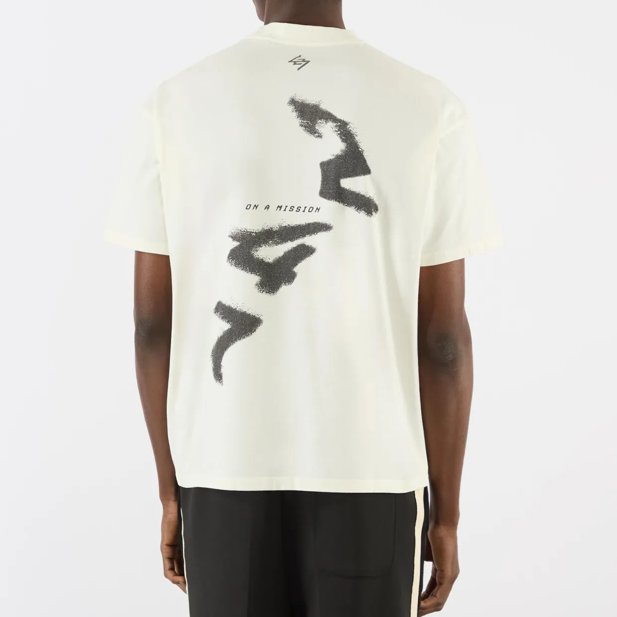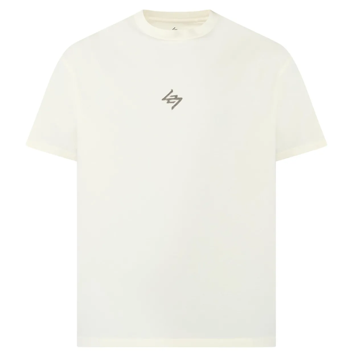 - Round neckline, short sleeves, dropped shoulders, straight hemline, logo print